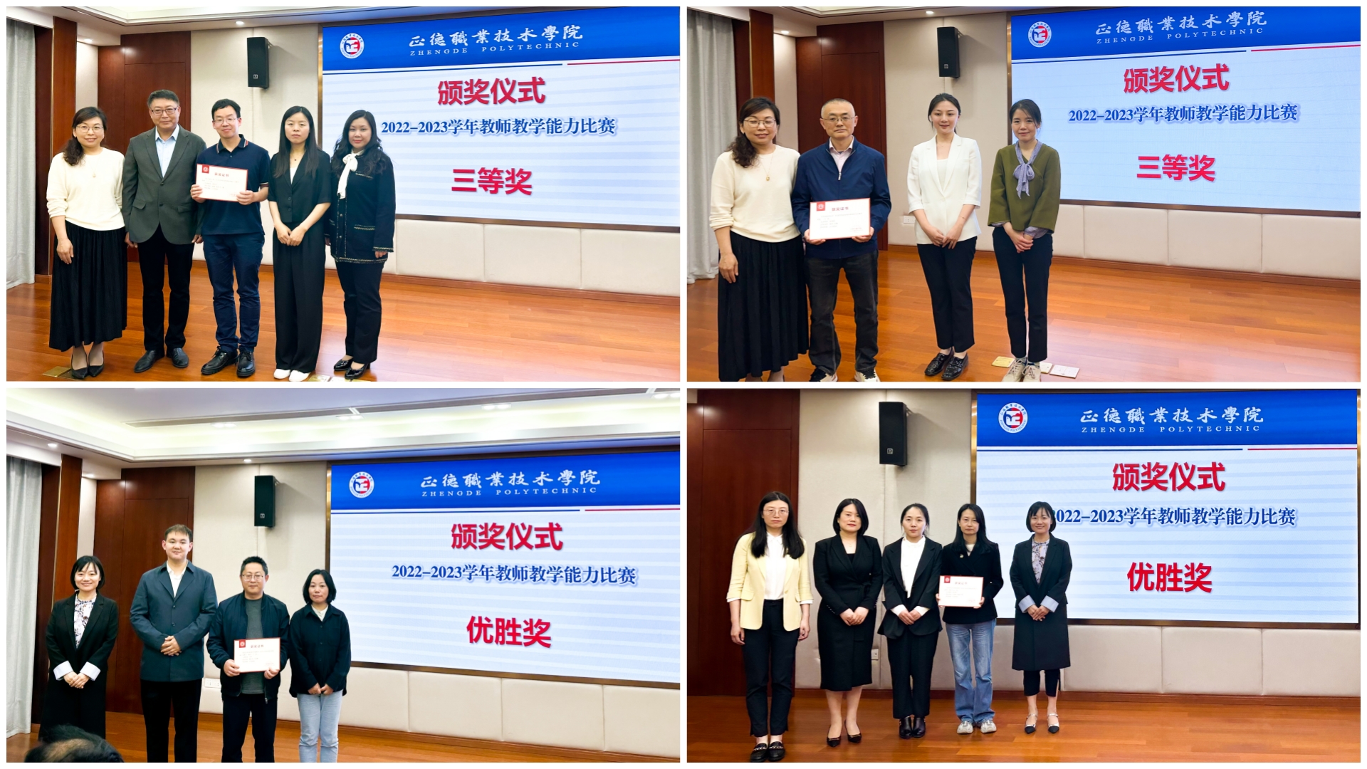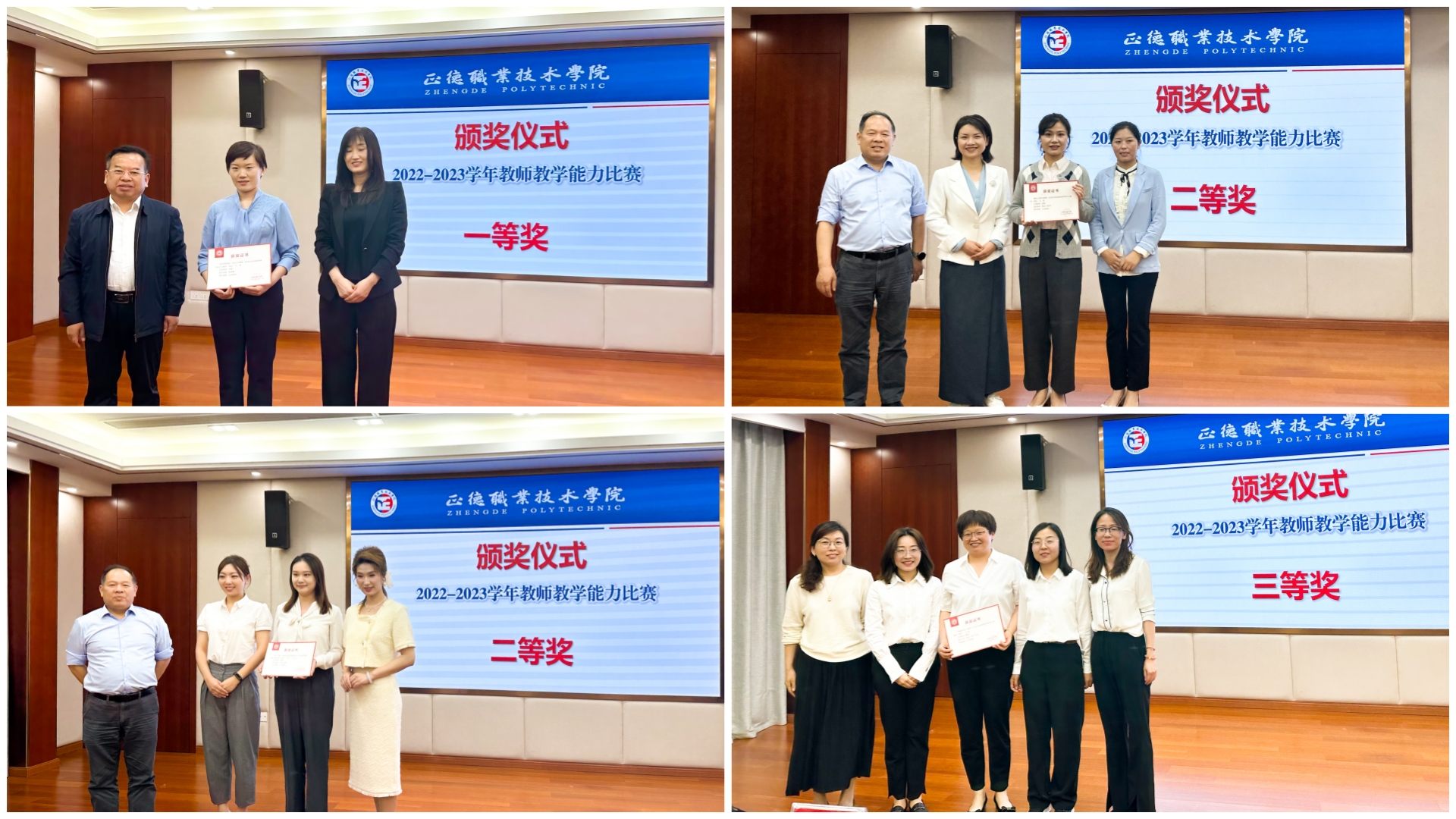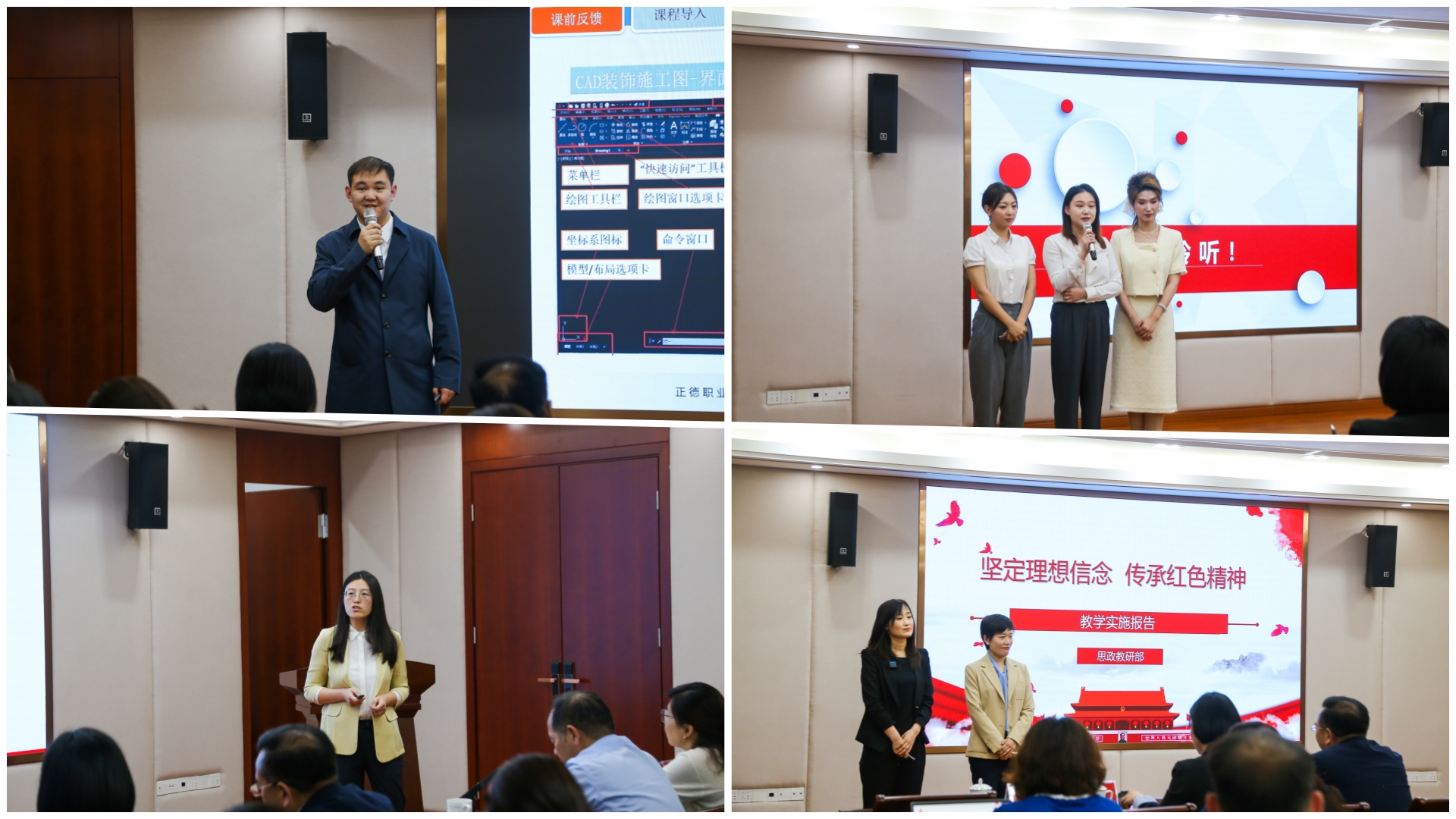 比赛对标全国教师教学能力大赛要求,参赛教师经过“选择教学主题、组建教学团队、组织教学设计、提炼教学特色、系部支持指导、打磨教学展示”,最终共有8个教学团队、26名教师从教学实施报告、无生教学展示、现场答辩三个环节全面地展示了教学团队课堂教学的基本功。现场共评选出一等奖作品1项、二等奖作品2项、三等奖作品3项、优胜奖作品2项。