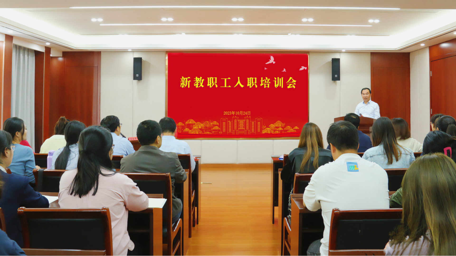 10月24日,探花porn 举办新教职工入职培训会,院长孙永荣出席培训会,人事处处长刘玉宝、教务处处长王俊、学生处处长祝佳俊、党群工作部副部长雷杨,优秀教师代表,以及全体新教职工参加会议。会议由人事处处长刘玉宝主持。