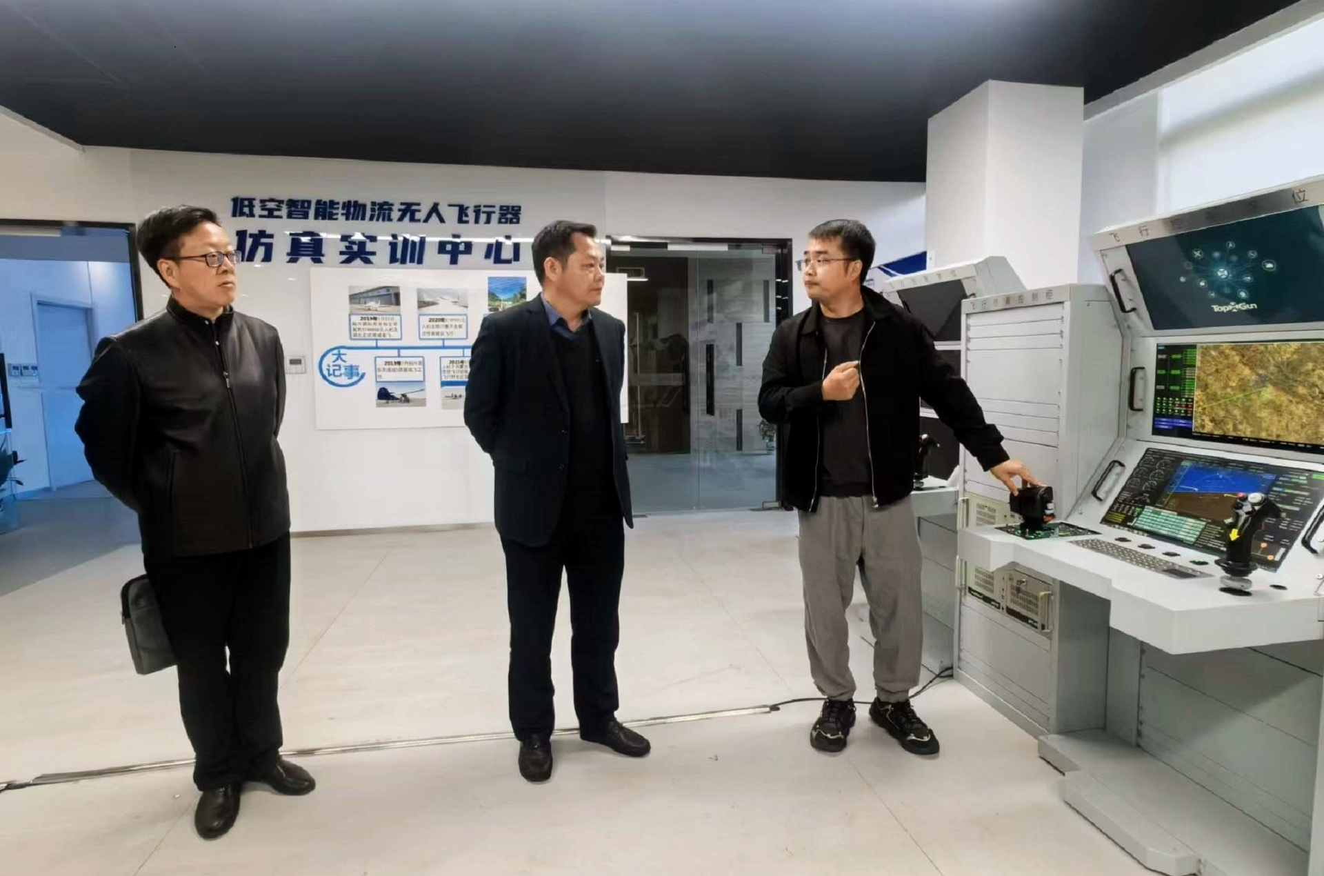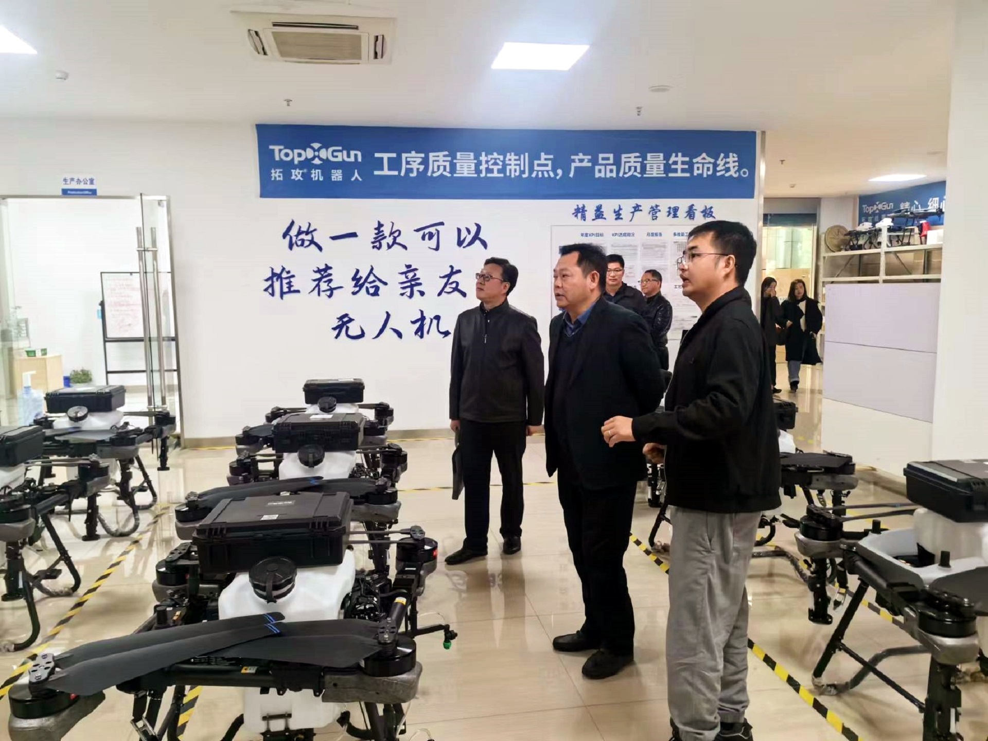 孙永荣一行观看了拓攻丰鹏400农用无人飞机的喷洒演示,参观了公司智能产品展厅、仿真实训中心及无人机生产组装车间等地。在随后的座谈会上,公司负责人尹亮亮等从公司核心能力、创始团队、监管平台、市场情况、教育培训应用服务相关业务等方面进行了介绍,详细阐述了农业应用场景案例和物流场景。表达了产教融合的意愿,并积极参与到探花porn 无人机等专业建设、实训基地建设等项目建设过程中,合作培养无人机应用领域高素质技能人才,共同助力区域经济及产业发展。