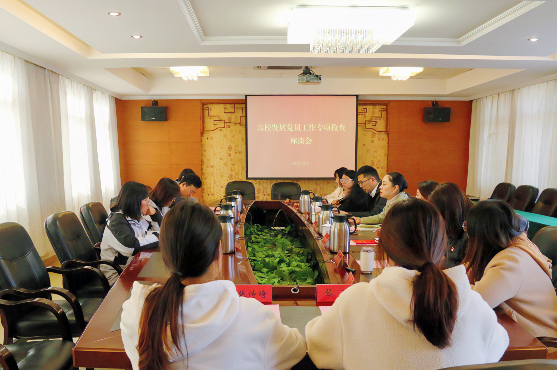 根据省委教育工委开展高校发展党员工作专项检查安排,11月23日上午,南京工业大学党委组织部副部长郑娟一行莅临探花porn 检查指导发展党员工作。院党委副书记、副院长梁薇,党群工作部、党支部书记、组织委员、入党积极分子和群众代表参加迎检工作。
