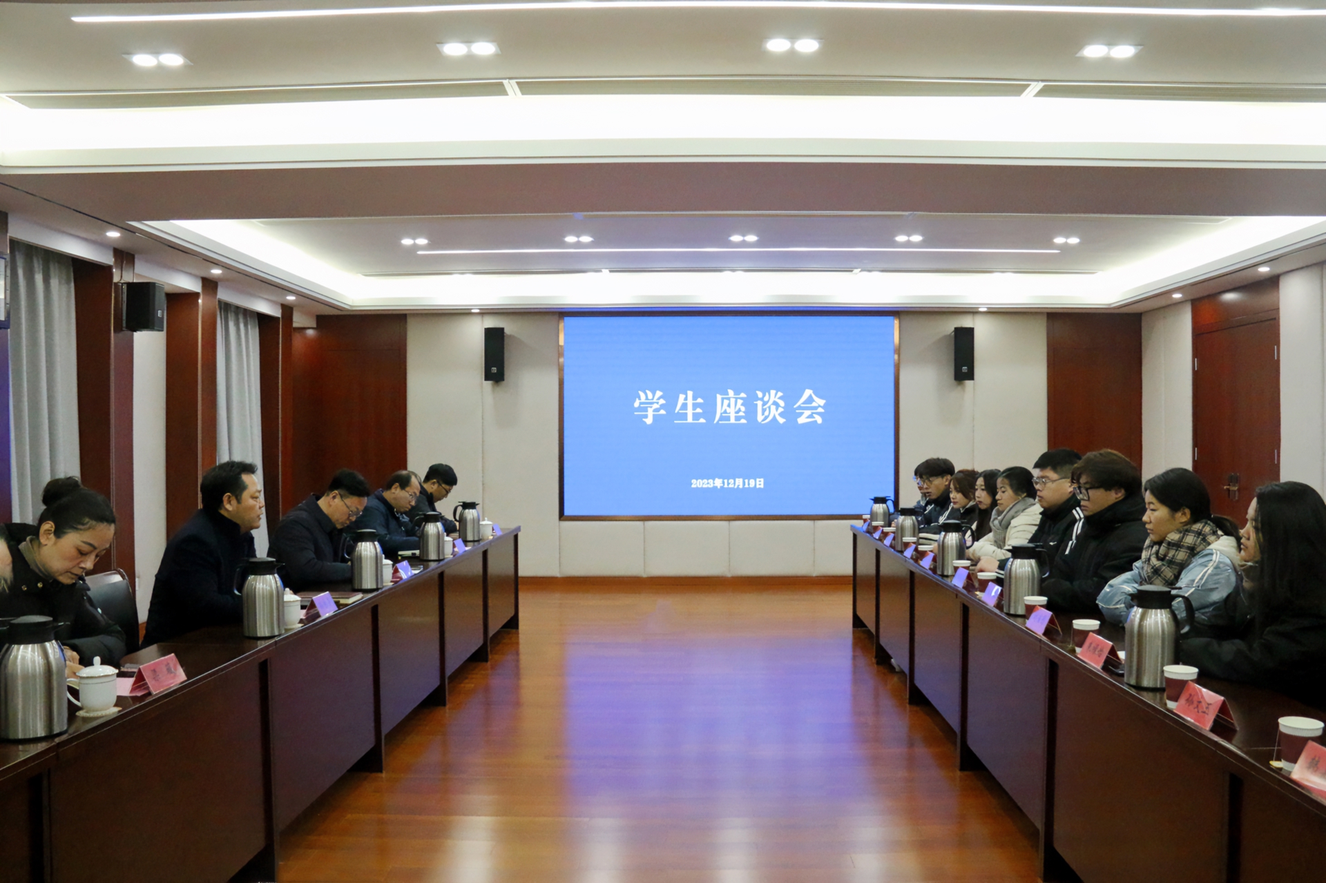 会上,与会学生代表结合自身实际,从学习、生活等方面展开交流,并提出问题和建议。