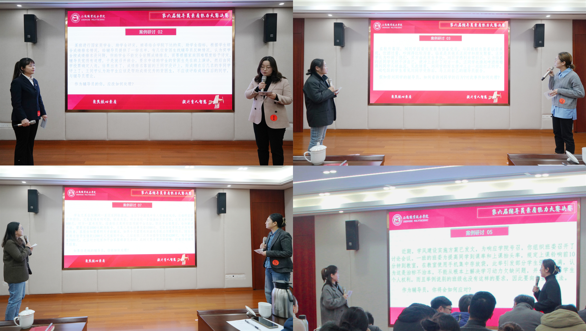 此次大赛分初赛、复赛和决赛三个部分,初赛是基础知识测试,复赛为谈心谈话和学情熟知,决赛为个人展示和案例研讨。参赛的辅导员们通过激烈角逐,展现出了较强的业务素养和综合能力。