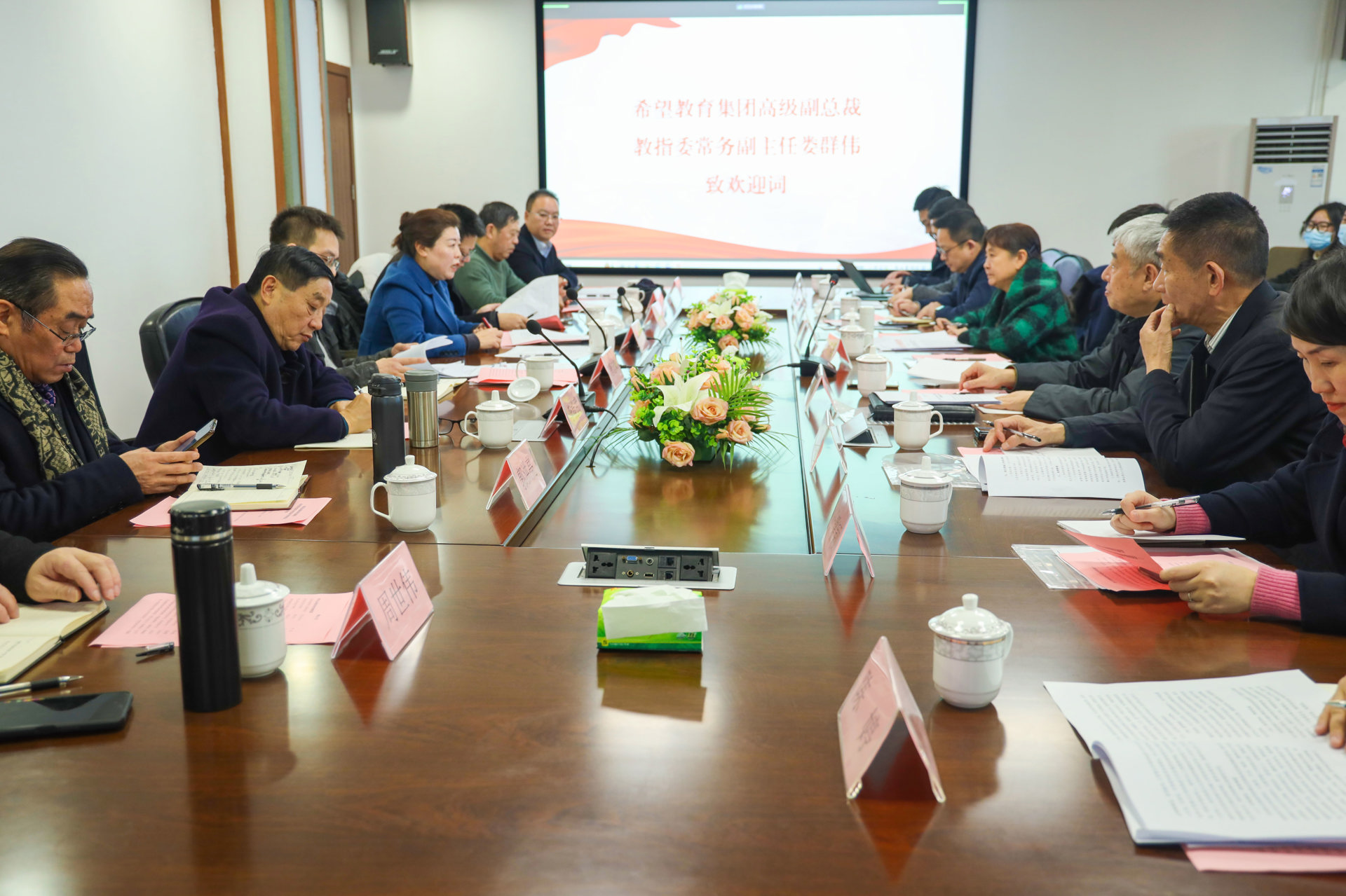 座谈会除党建合作联盟人员、希望教育集团高级副总裁、教指委常务副主任娄群伟女士及希望教育集团举办的在川五校党委书记外,两省教育工委也派相关人员参加了座谈。座谈会“以高质量党建引领高质量发展”为主题,分析民办高校党建工作面临的新形势、新要求,交流其做好党建工作的情况及经验。座谈会由集团教指委副主任李能武主持。