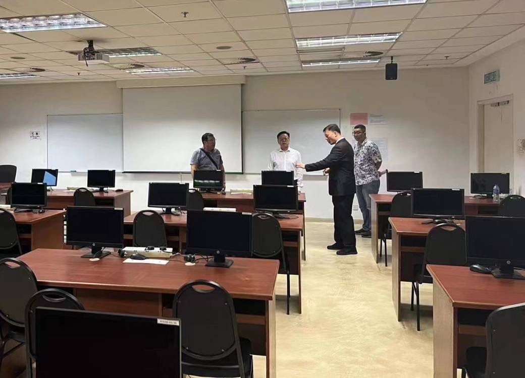 在马来西亚亚太科技大学,赵凯雷与亚太科技大学相关领导、负责人,就两校联合培养、互派教师、文献资源共享等工作进行洽谈,并签署了合作备忘录。赵凯雷在国际交流与合作中国区负责人LONG SAY SIAN陪同下,实地参观了教学中心、图书馆、IT实验室和学生宿舍,并深入课堂观摩了教学活动。