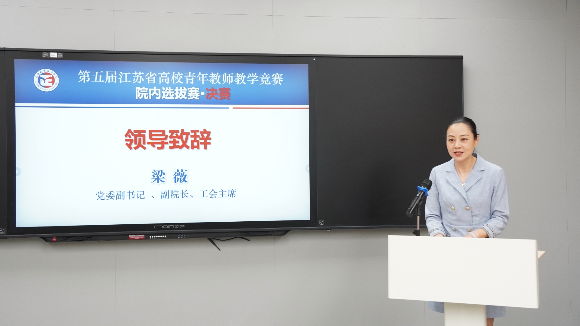 5月14日下午,院内选拔赛决赛拉开帷幕。院党委副书记、副院长、工会主席梁薇,教务处处长王燕出席,线上线下共30余名教师观摩。