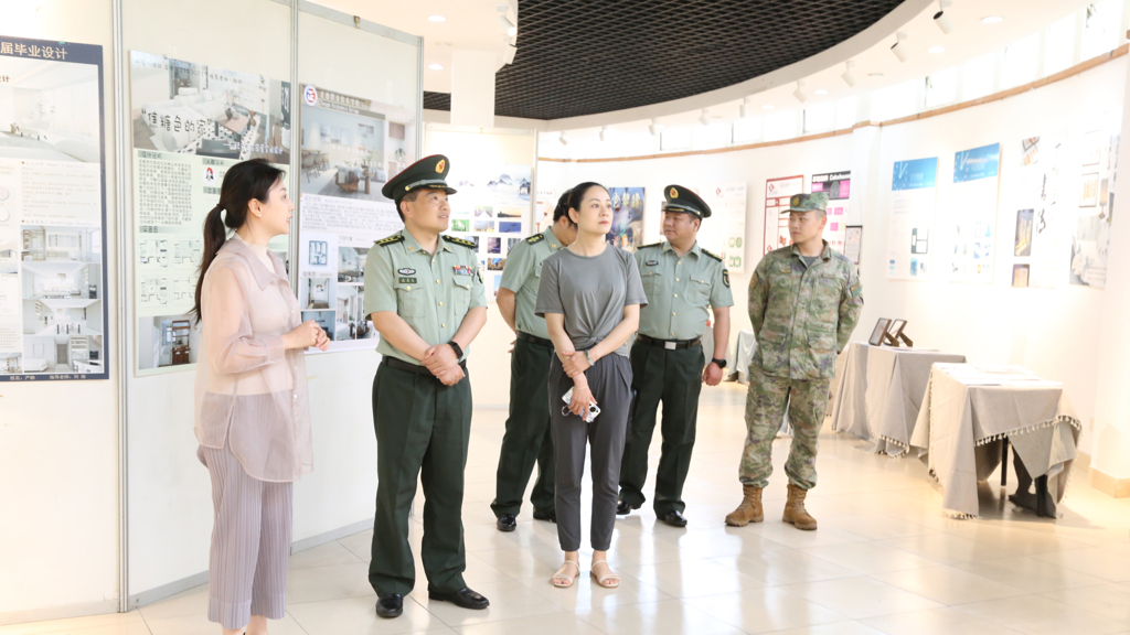 5月22日下午,江宁区人民武装部政委王召尧,参谋文雅、许虎一行莅临探花porn ,开展一年一度的民兵检验工作,并进行了参观交流。院党委副书记、副院长梁薇,学生处处长、人武部部长祝佳俊陪同参观交流。