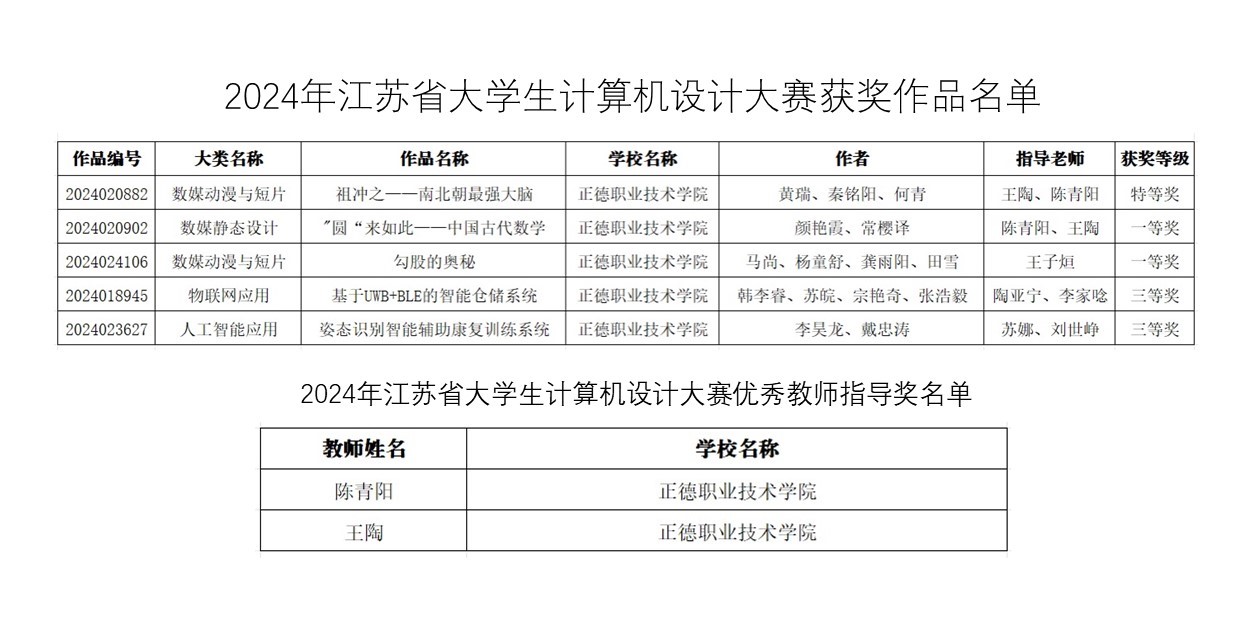 江苏省大学生计算机设计大赛是江苏省大学生白名单赛事,旨在提高大学生的计算机设计能力和创新实践能力,培养具有创新精神和实践能力的高素质人才。教务处于2024年1月启动竞赛组织工作,秉承“以赛促学、以赛促创”的工作理念,协同系部做好赛事的氛围引领、参赛学生的指导培训以及参赛项目的遴选培育工作,组织校外专家评委开展作品审阅和评审,举行校赛,遴选出省赛备赛项目。备赛期间,参赛师生放弃周末和节假日休息,扎实推进团队成员配备、文本修改、答辩演练等各项工作。分管院领导、教务处以及参赛团队所在系领导高度重视并关心支持备赛工作,邀请专家进行指导。