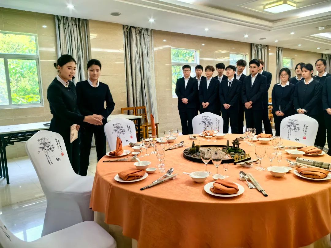 民用航空系酒店管理与数字化运营专业展示了“燕矶夕照”为主题的酒店餐饮摆台,严谨的业务能力和主题的诗意氛围相融合;空中乘务专业学生进行了民航礼仪服务展示,整齐划一的标准规范动作诠释了优雅与专业,两场展示生动体现出了专业与职业的完美结合,展现了学生在学习中形成的良好的职业素养。在分享会上学生代表孙俊涛介绍了自己在禄口机场实习期间工作内容并结合具体案例,分享了自己遇到的挑战和收获鼓励同学们将所学应用于实践,为自己的未来铺就坚实的基石。
