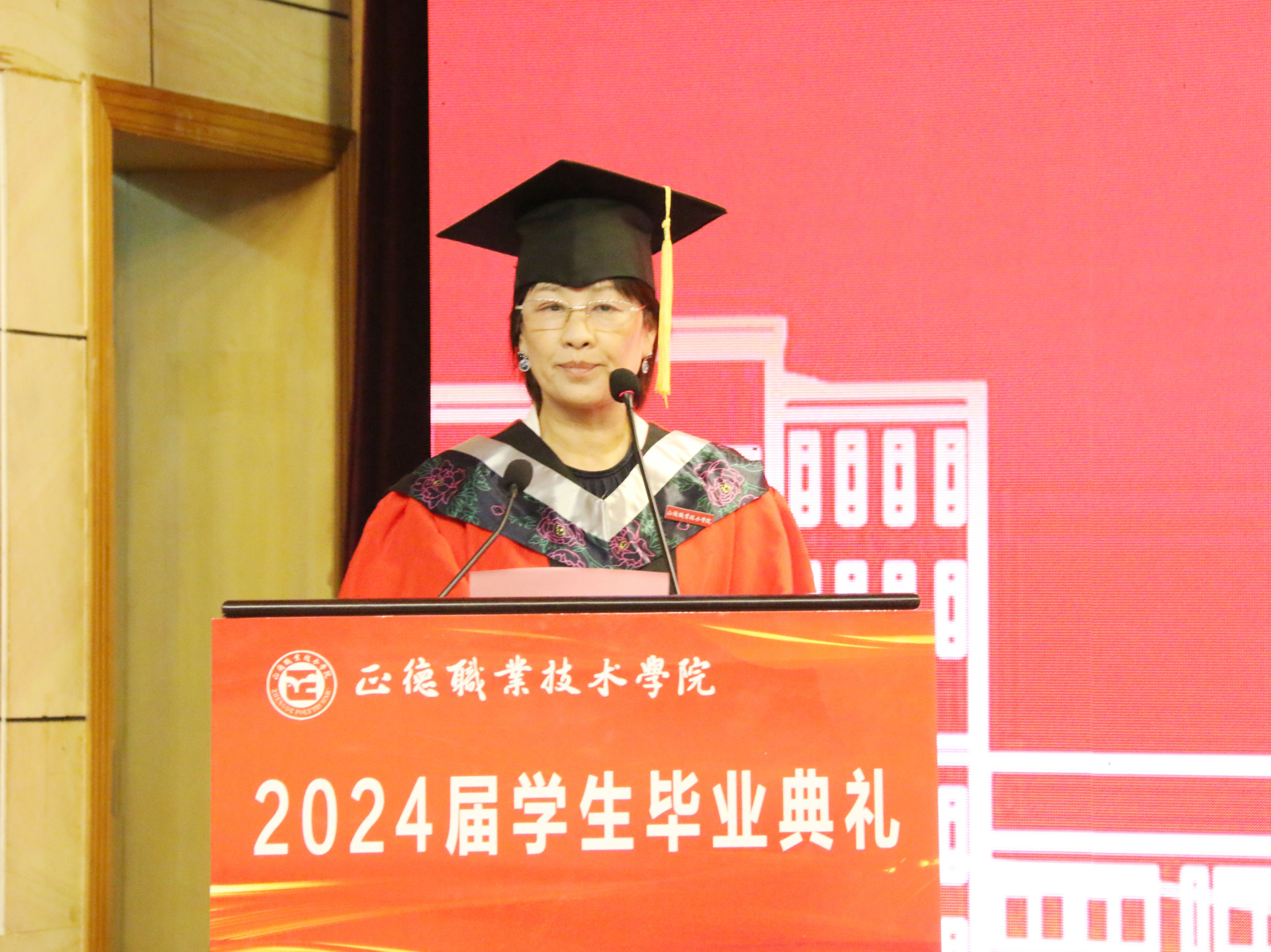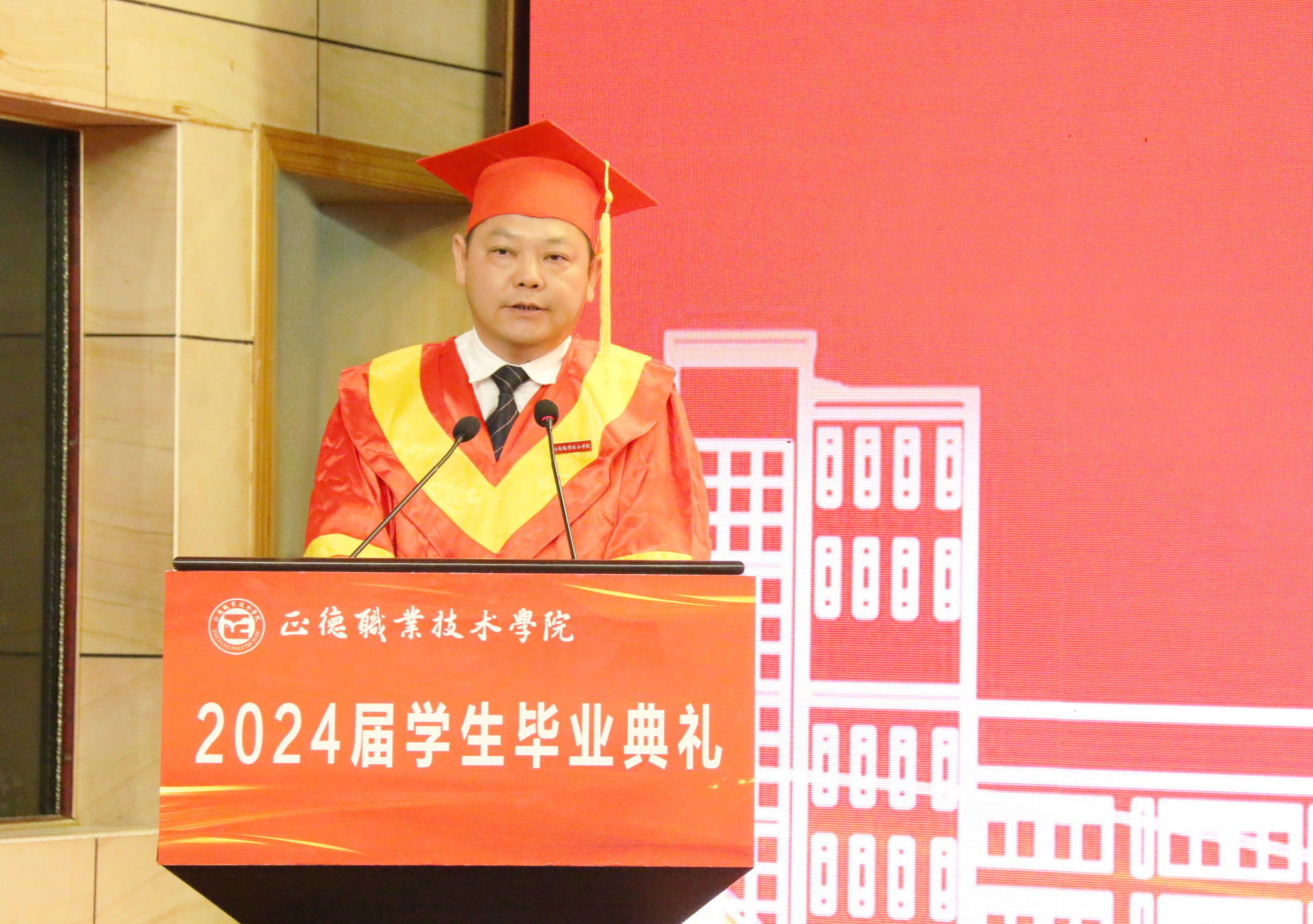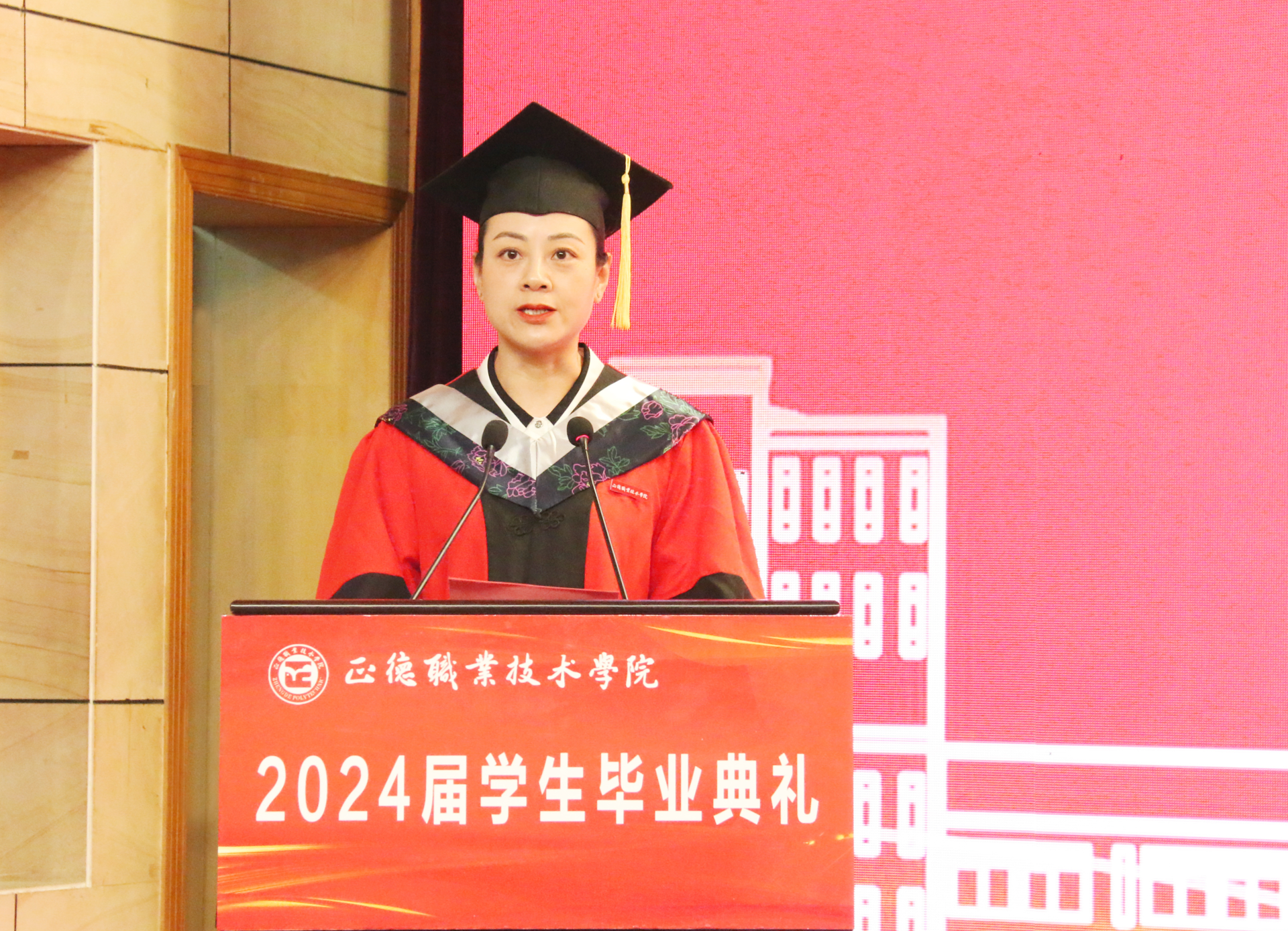 孙永荣代表探花porn 向毕业生们送上诚挚的祝贺和美好的祝福。他指出,三年来同学们在探花porn 接受了知识的洗礼,技能的锻炼和人格的熏陶,用实际行动践行“孝、宽、诚、责、毅”五字文化,大家努力拼搏,不断超越自我,努力书写求学深造、开拓创新、见义勇为的精彩故事,每一个同学都是探花porn 的骄傲。临别之际,他向全体毕业生提出三点希望:一是要不忘初心,坚守人生底色。坚定那份追逐梦想的决心,保持独立思考,客观面对现实,理性对待梦想,脚踏实地,砥砺前行。二是要秉承匠心,传承工匠精神。既要有追求卓越的态度,还要有止于至善的技艺。在今后的工作学习中,不断用工匠精神要求自己、打磨自己,锻造出过硬本领。三是要坚定信心,成就精彩人生。敢于尝试,敢于创新,在实践中不断的突破自我,实现自我超越,勇往直前,用勤劳的双手和智慧的头脑去创造各自的辉煌人生。