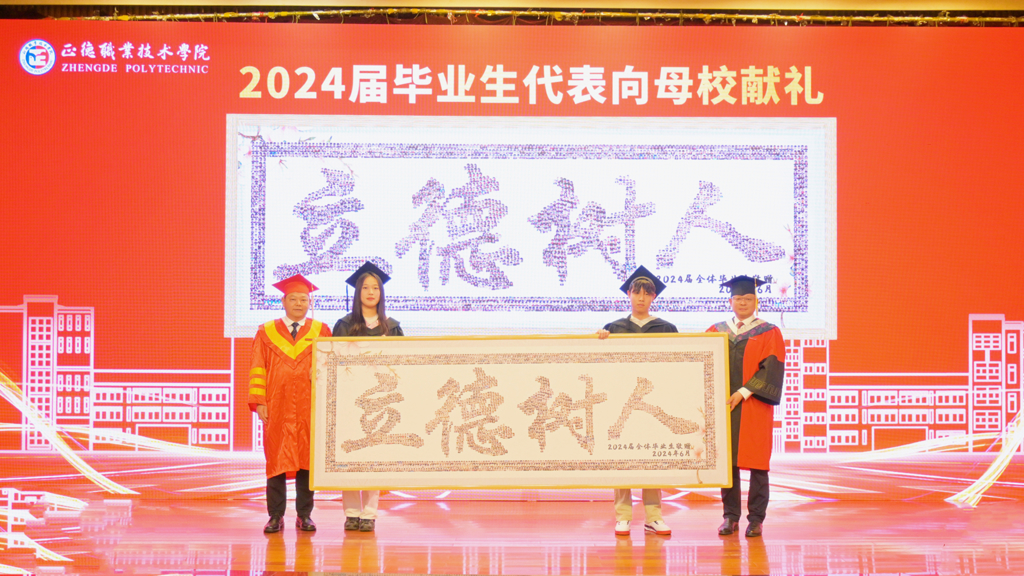汽车与机电工程系张诗琦同学代表2024届全体毕业生向母校献礼,2788张毕业生照片拼成的“立德树人”,不仅蕴含着毕业生对母校的深情与敬意,更是对母校培养出更优秀技术技能人才的美好祝愿。