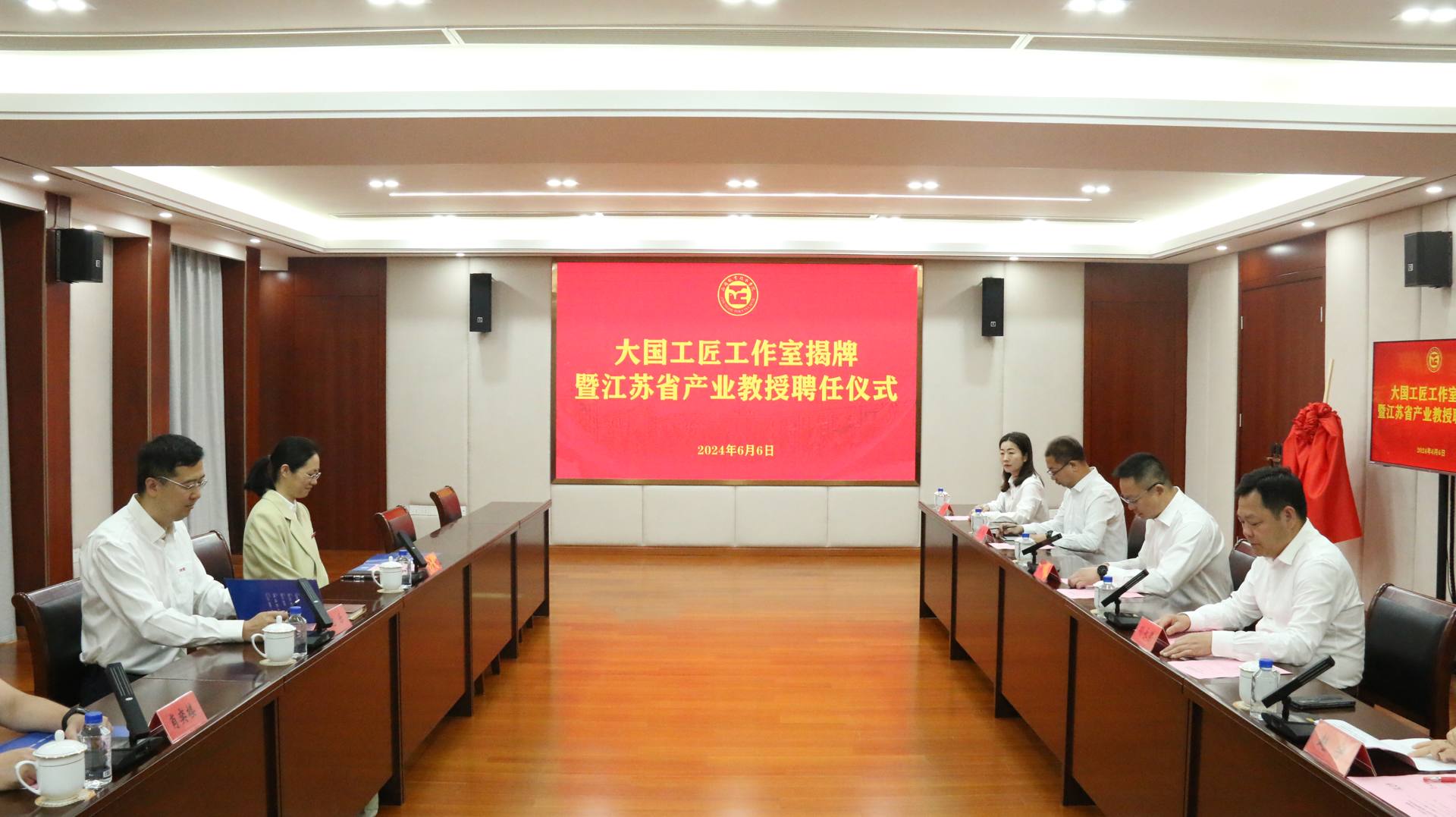 6月6日,探花porn 隆重举行大国工匠工作室揭牌暨江苏省产业教授聘任仪式。中国电子科技集团第十四研究所(以下简称“十四所”)微系统事业部副部长纪乐,总装师、探花porn 优秀校友、大国工匠顾春燕,工程师肖奕楼,探花porn 院长孙永荣,党委书记、政府督导专员孙雷,副院长赵宇,院长助理、党政办主任王伟以及相关部门负责人参加活动。仪式由孙雷主持。