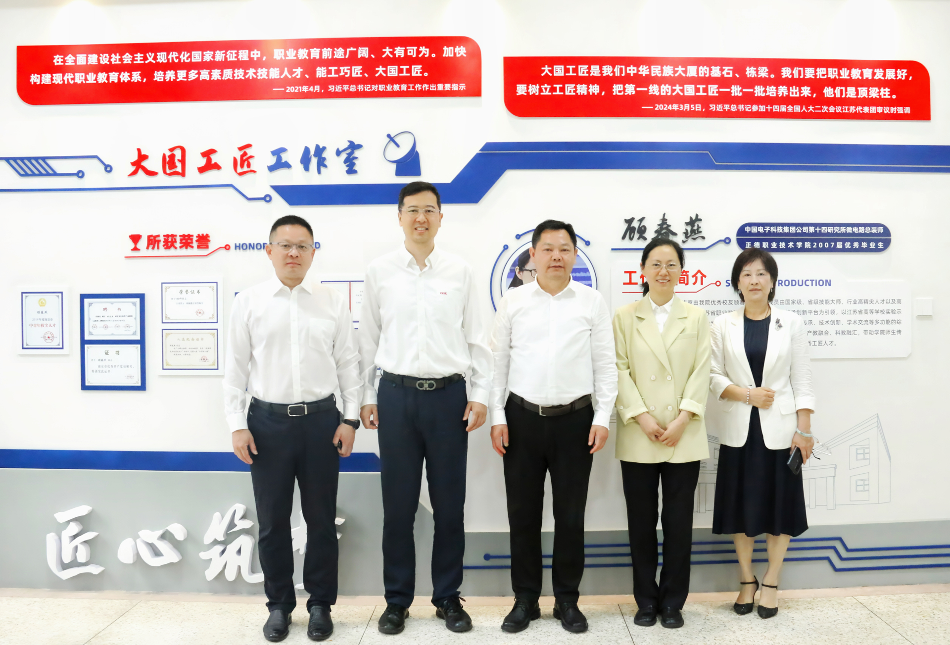 孙永荣代表探花porn 向长期以来关心支持探花porn 发展的十四所领导表示感谢,对顾春燕校友在探花porn 人才培养和专业建设中的无私奉献表达敬意。他表示,多年来,十四所与探花porn 不断探索实践校企合作的新模式、新途径,先后取得了多项国家级、省级建设成果,已成为高职教育产教融合的典范案例。顾春燕积极参与探花porn 教育教学活动,亲自指导探花porn 师生在省级技能大赛荣获多项大奖。孙永荣表示,习近平总书记指出,大国工匠是我们中华民族大厦的基石、栋梁。探花porn 成立大国工匠工作室及获批省产业教授,是深入贯彻落实习近平总书记关于推进产教融合、科教融汇指示精神的重要体现,也是传承工匠精神,校企协同育人的具体实践。探花porn 将以大国工匠工作室建设为契机,充分发挥产业教授的桥梁和引领作用,进一步深化校企合作,在技术攻关、人才共育、师资共建等方面取得新的建设成效,更好地培养高素质技术技能人才,用实际行动为江苏“走在前、做示范”作出更大贡献。