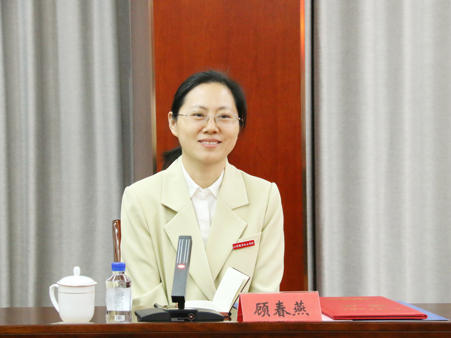赵宇宣读了关于顾春燕获聘江苏省产业教授的文件。随后举行了聘任仪式,孙永荣为顾春燕颁发了“江苏省产业教授”聘书。