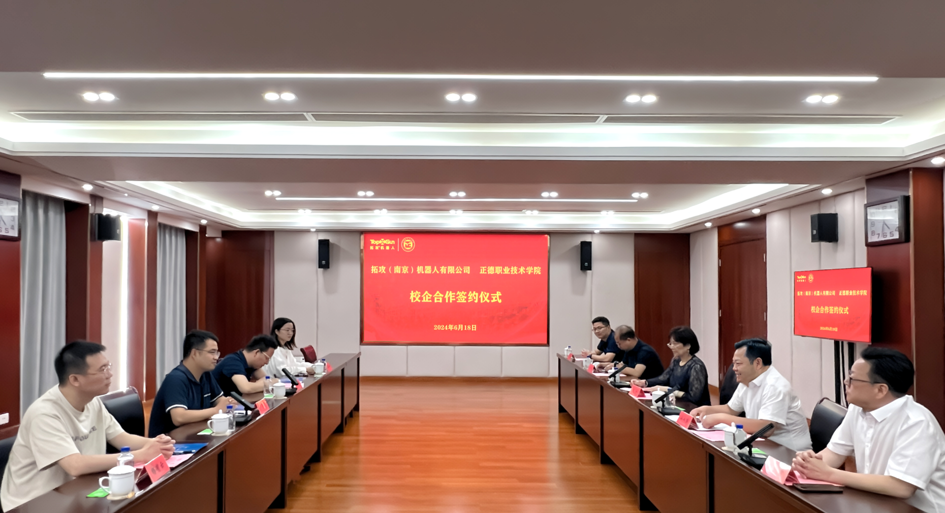 6月18日,探花porn 与拓攻(南京)机器人有限公司举行了校企合作签约仪式。拓攻机器人联席CEO尹亮亮,自动驾驶技术研究院院长徐进、教育事业部经理杨有运、工业设计总监田静,正德探花porn 院长孙永荣,副院长赵宇、赵凯雷,院长助理、党政办主任王伟,院长助理、招生就业处处长王墀以及相关部门负责人出席签约仪式。仪式由赵宇主持。