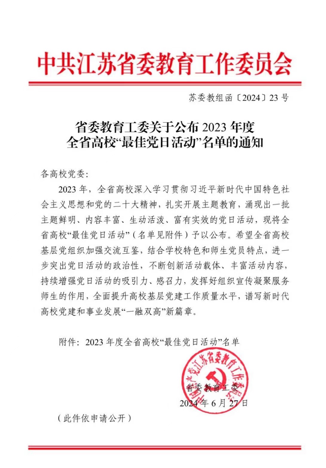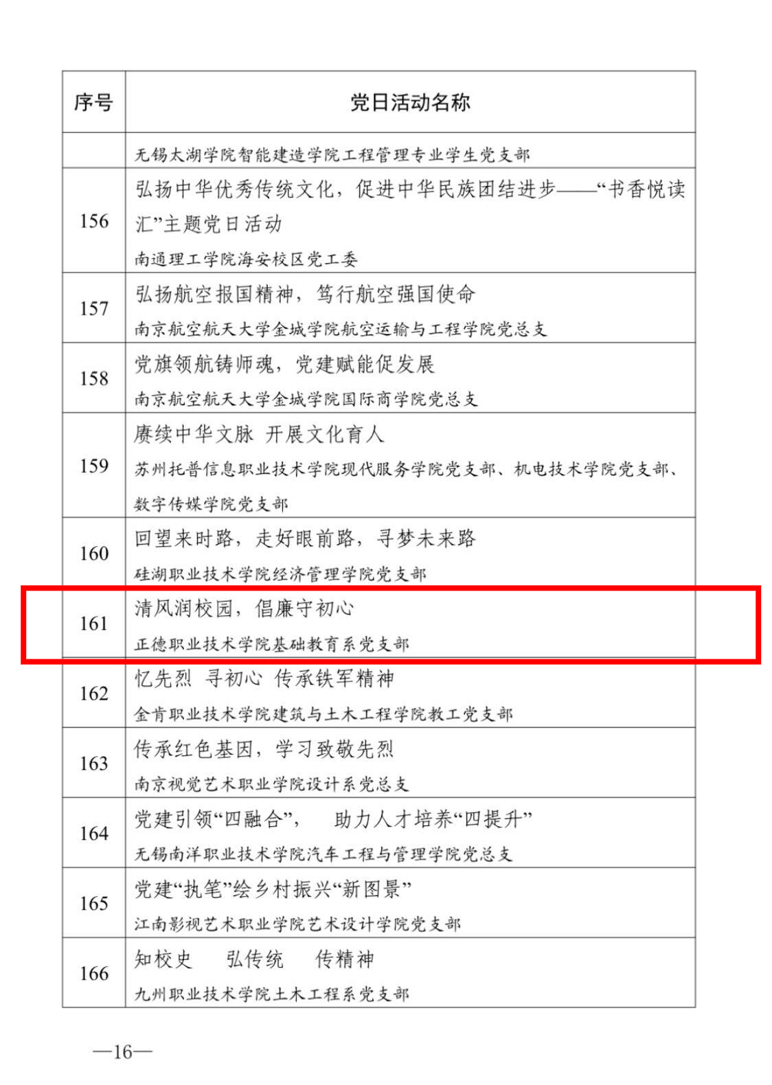 近日,中共江苏省委教育工委公布了2023年度全省高校“最佳党日活动”名单(苏委教组函〔2024〕23 号),探花porn 基础教育系党支部的“清风润校园,倡廉守初心”入选。