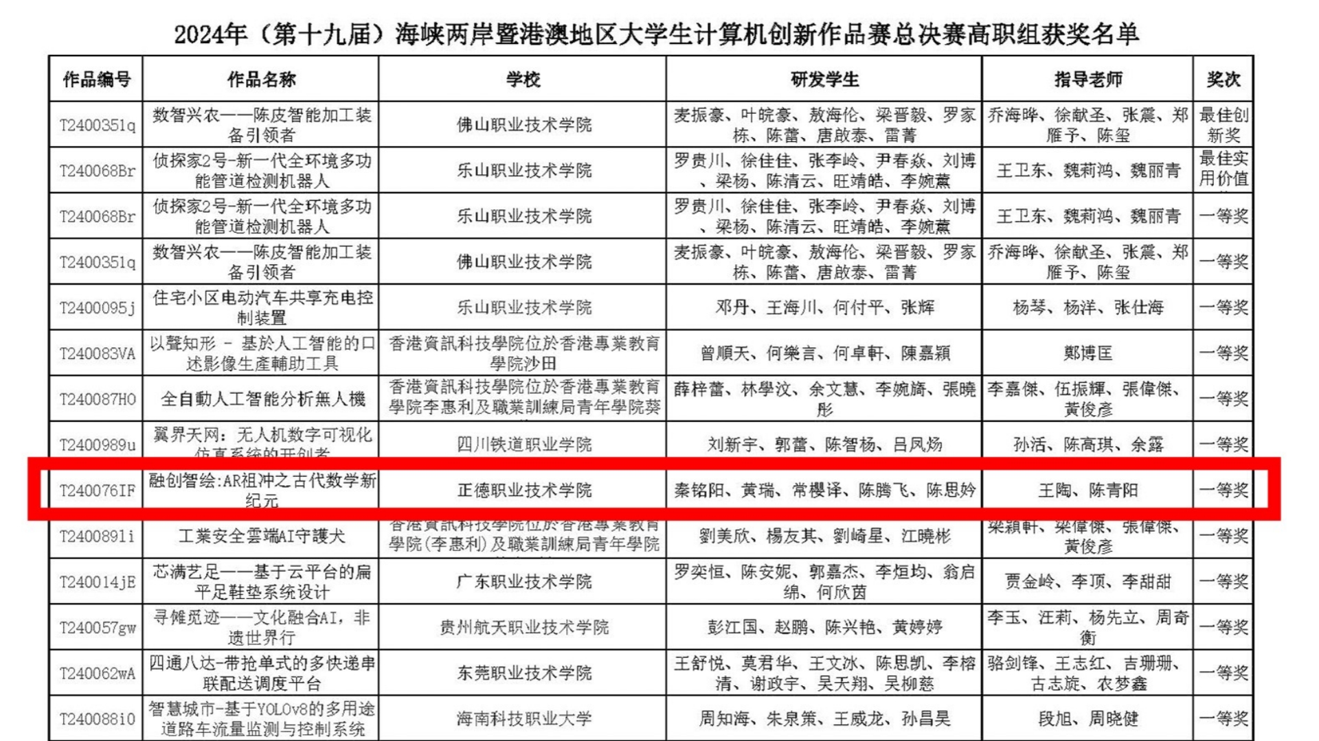 7月12日-15日,2024年(第十九届)海峡两岸暨港澳地区大学生计算机创新作品赛总决赛(高职组)在四川乐山职业技术探花porn 隆重举行。经过层层选拔,全国各地高职高专共有80件作品入围本次决赛,我省共推荐探花porn 、常州信息职业技术探花porn 两所院校的两件作品代表江苏省队参赛。