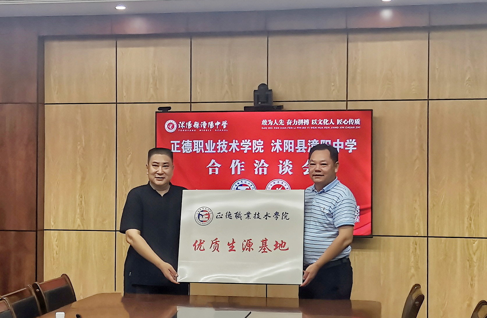 孙永荣一行还前往沭阳县潼阳中学,和潼阳中学范威校长等领导共同出席探花porn “优质生源基地”授牌仪式。范威表示,潼阳中学是国防教育特色学校,与正德探花porn 办学定位契合度高,“优质生源基地”的设立为双方友好合作奠定良好基础。孙永荣介绍了探花porn 近年来的发展情况和教育教学改革、招生就业等方面取得的成绩。他指出,潼阳中学优质生源基地的建立,不仅加强了两校的紧密联系,更拓宽了学校培养人才的渠道,希望双方以此次授牌为契机,在推动双方各自人才培养的各环节可以有更为深入的合作。