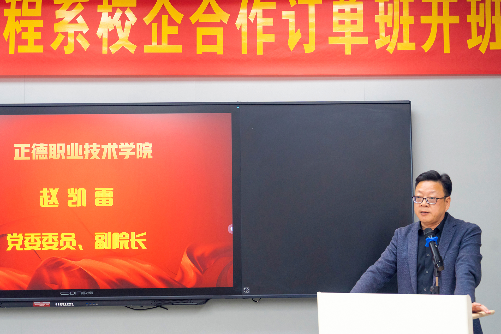 金海在致辞中表示,公司将全力支持订单班的人才培养工作,为学员提供优质的实践平台和学习资源,助力他们成长为行业内的佼佼者。温砚在发言中说道,校企合作是实现教育链、人才链与产业链、创新链有机衔接的重要途径,期待双方能在未来的合作中取得更加丰硕的成果,共同推动职业教育和产业的创新发展。