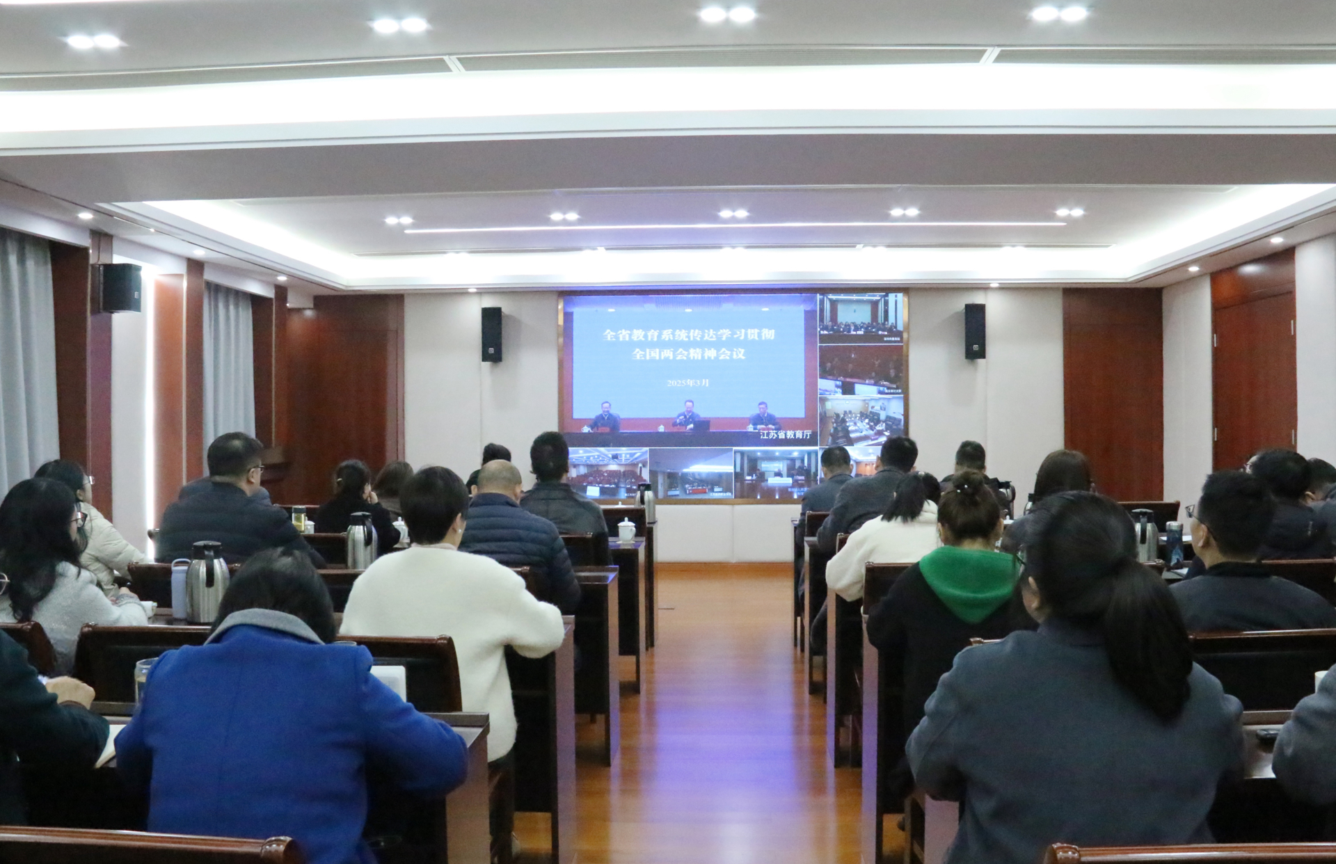 会议指出,2025年全国两会是在“十四五”规划收官之年和进一步全面深化改革的关键之年召开的重要会议。习近平总书记看望参加会议的民盟、民进、教育界委员并参加联组会,与来自教育系统的6位委员交流并发表重要讲话,充分体现了习近平总书记对教育的高度重视,饱含着对教育的深切关怀和殷殷嘱托。习近平总书记的重要讲话,高屋建瓴、思想深邃、内涵丰富、振奋人心,着眼推进中国式现代化伟大事业,深刻阐明新时代新征程教育的先导性、基础性支撑作用,是指导教育工作的又一纲领性文献,为建设教育强国、科技强国、人才强国再次击鼓催征,指明前进方向,凝聚奋进力量。习近平总书记再次亲临江苏代表团参加审议并发表重要讲话,对江苏关怀至深、期望至高,对江苏教育十分关心、寄予厚望,为做好江苏工作提供了科学指引和根本遵循,是引领全院师生紧跟领路人、奋进新征程的时代号令。