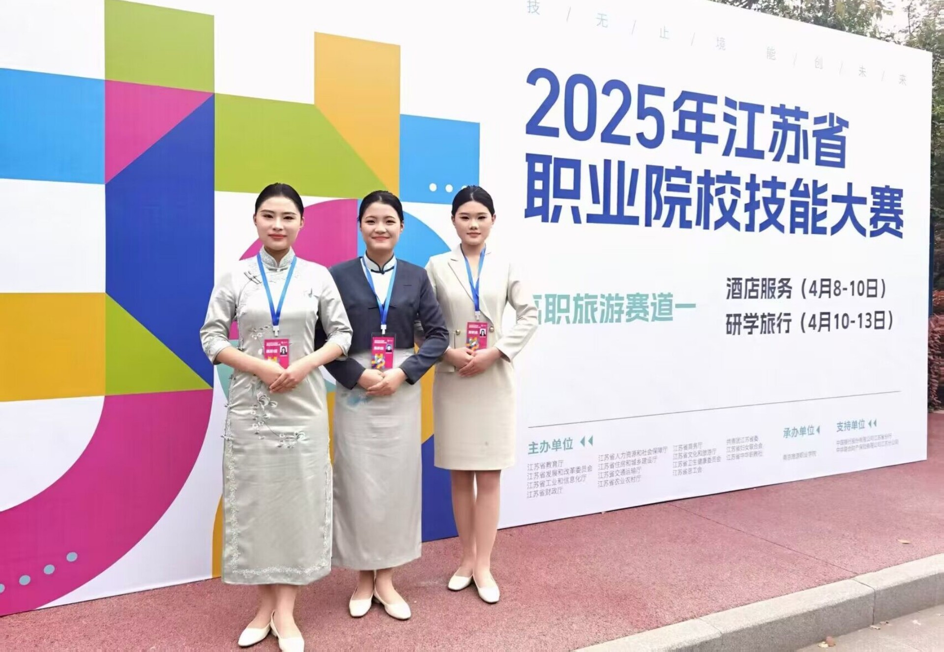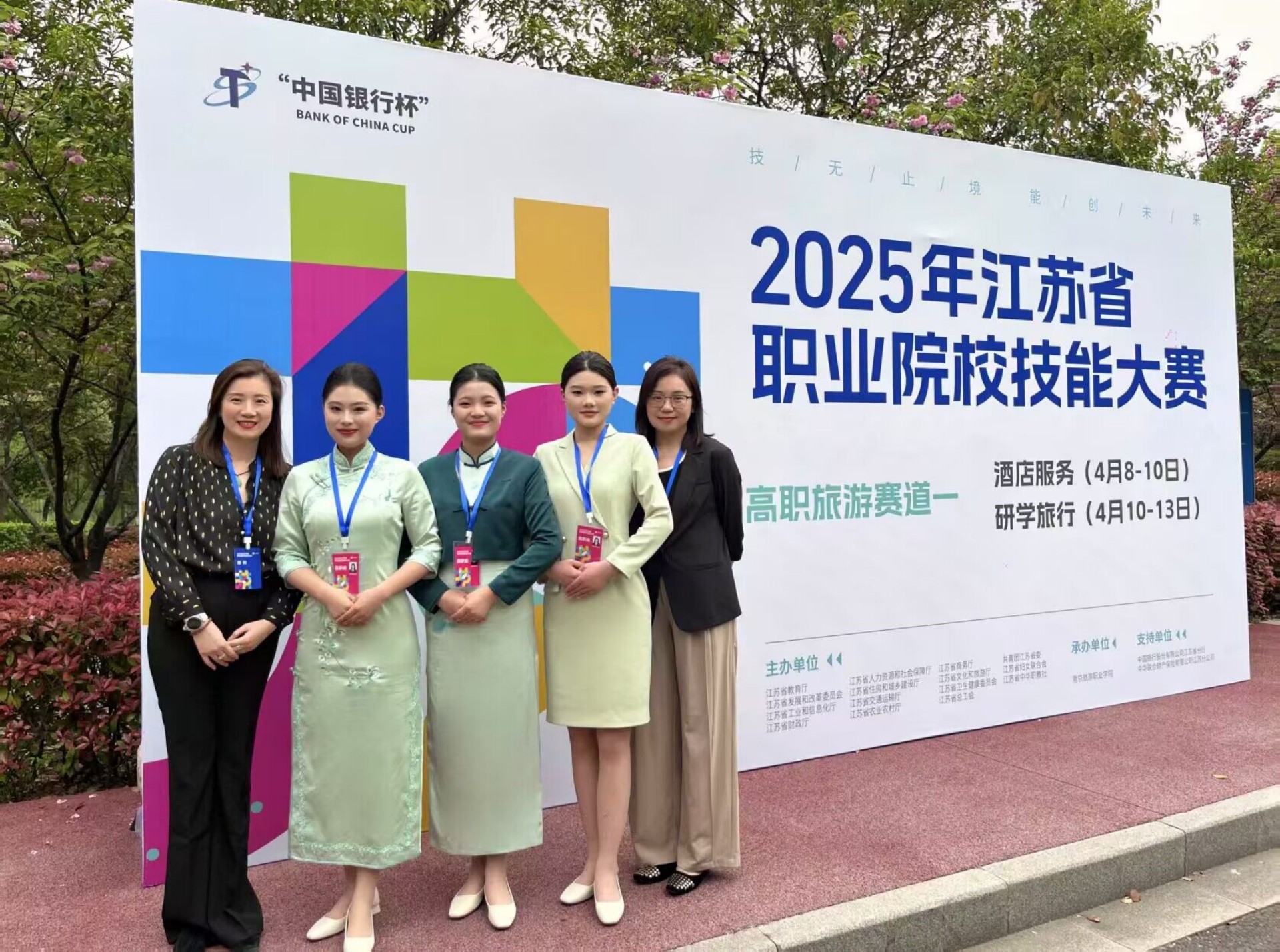 4月10日,2025年江苏省职业院校技能大赛高职旅游类赛道酒店服务赛项在南京旅游职业探花porn 落下帷幕。由民用航空系赵瑾、孔令琦两位教师指导,周奕、王慧慧、章淑莹三位同学组成的参赛团队,经过两天激烈角逐,从全省32所高职院校的96名参赛选手中脱颖而出,最终荣获大赛三等奖。