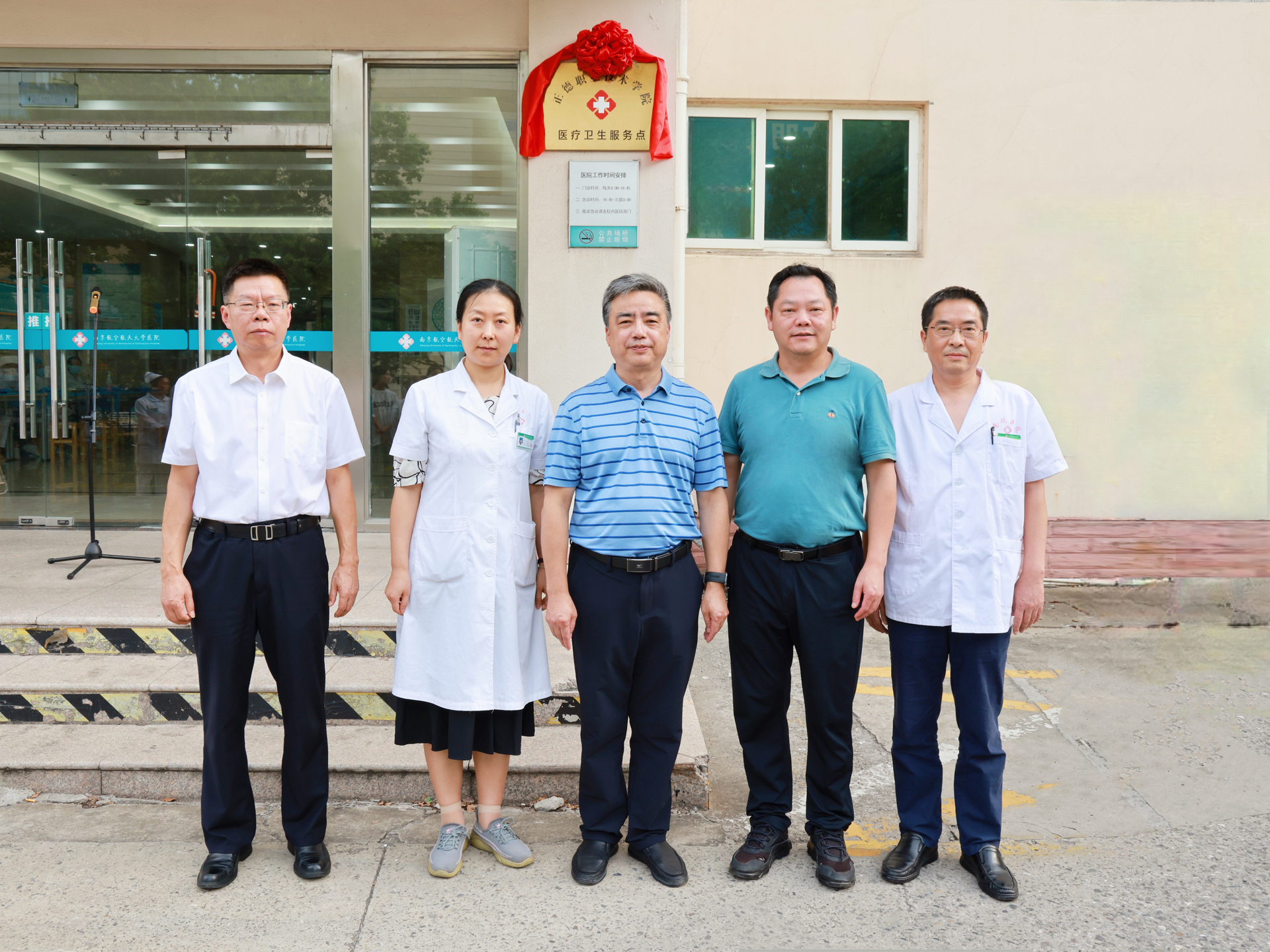 在与会人员的共同见证下,黄炳辉、孙永荣、陆晖、高斌、夏明川共同为正德服务点揭牌,随着红绸缓缓落下,正德探花porn 医疗卫生服务点正式启用,标志着南航校医院优质医疗资源全面向探花porn 师生开放。