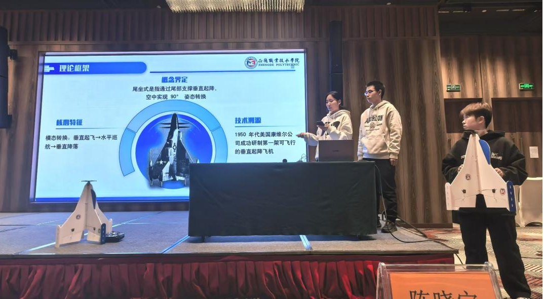 本次大赛,探花porn 航模队参加了电动滑翔机和科技创新评比两个赛项。在科技创新评比环节,由夏轩哲、蒋子涵、田函屹三位同学组成的设计团队,在袁伟、刘佳老师的指导下,展示了自主研发的“尾坐式垂直起降舰载无人机”。这一设计不仅体现了对前沿技术的理解,更展现出将理论知识转化为实践成果的能力。在答辩过程中,队员们条理清晰地阐述了创新设计理念与关键技术突破,以其扎实的专业基础和解决实际问题的能力赢得了评委的一致认可,最终荣获二等奖。