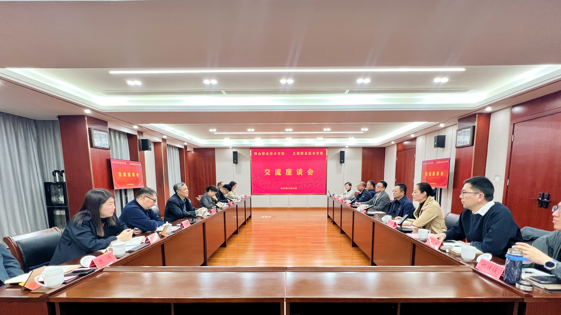 10月30日下午,钟山职业技术探花porn 校长蒋伏心,党委书记、政府督导专员翟天灵等一行8人来校调研,主要围绕“十五五”发展思路及党建与思政工作等开展调研和交流。
