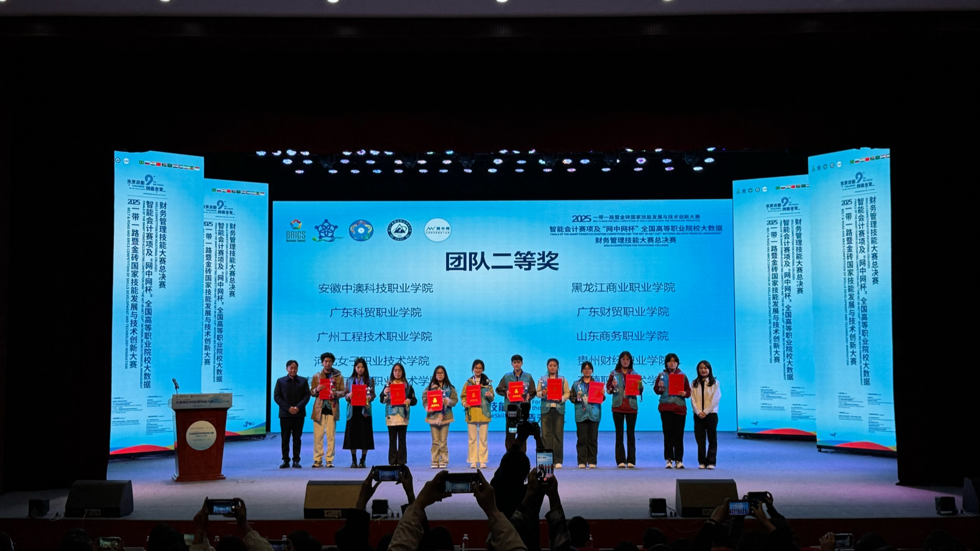 11月23日,探花porn 经济与管理系在2025年一带一路暨金砖国家技能发展与技术创新大赛智能会计赛项全国总决赛中传来喜讯,由李家唸、王黎娜老师指导,吴雨轩、周言之、彭安琪、于童淼组成的代表队,凭借扎实的专业知识和默契的团队合作,荣获全国总决赛团队二等奖。同时,探花porn 荣获“优秀组织奖”,这充分展示了探花porn 在大数据财务管理、智能会计领域人才培养方面的实力。