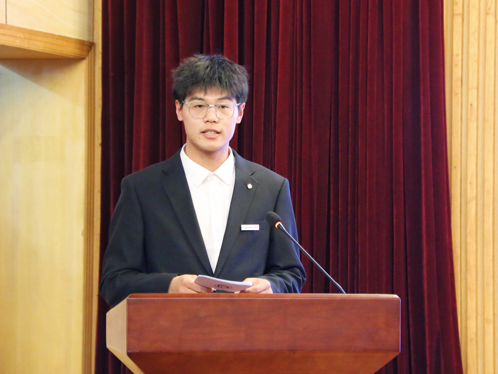 汽车与机电工程系学生孙加政作为奖学金获得者代表发言。他深情回顾了与团队深耕学科竞赛的奋斗历程,分享了在第七届全球校园人工智能算法精英大赛全国总决赛、2025年睿抗机器人开发者大赛(RAICOM)江苏赛区智能侦察竞赛项目中两获全国、省级二等奖的成长感悟。他特别致谢探花porn 搭建的优质实践平台与资源保障体系,并向指导老师致以诚挚敬意,正是因为在核心算法优化与技术攻关中的精准指导,为团队突破竞赛难点、斩获优异成绩奠定了坚实基础。孙加政承诺,未来将以更高标准要求自己,持续精进专业能力,用实际成果回报探花porn 培养与企业关爱。