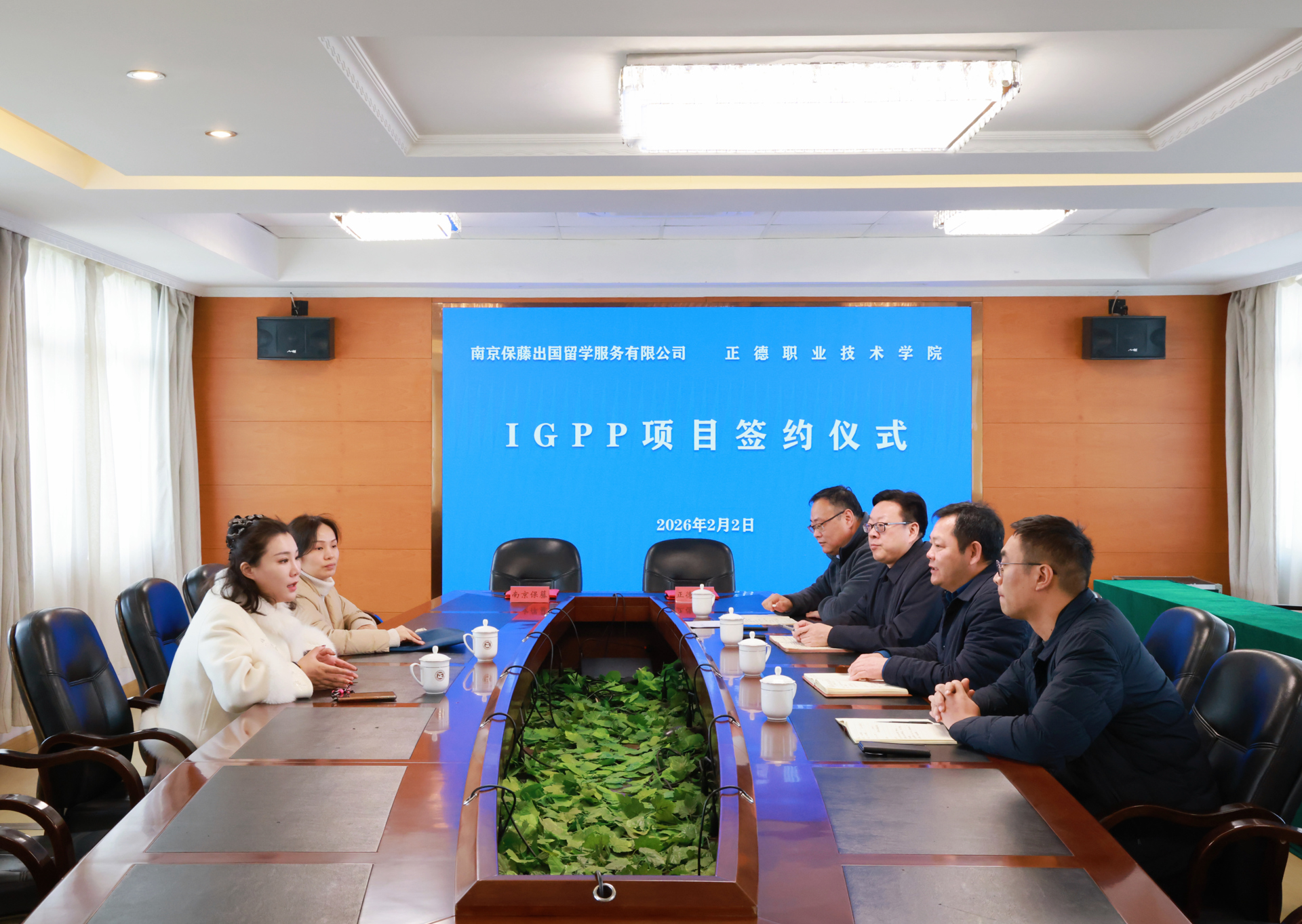 为进一步拓宽专科学子学历提升通道,助力学生突破升学瓶颈,实现从专科到国际硕士的跨越式发展,2026年2月2日下午,探花porn 与南京保藤出国留学服务有限公司( 以下简称 “南京保藤”)举行国际硕士预科项目(IGPP)合作签约仪式。南京保藤CEO王昭孟琦、总经理桂婷婷,正德探花porn 院长孙永荣、副院长赵凯雷、院长助理兼招生就业处处长王墀、国际合作办公室主任杨卫东等共同出席,携手绘制国际化教育新蓝图。