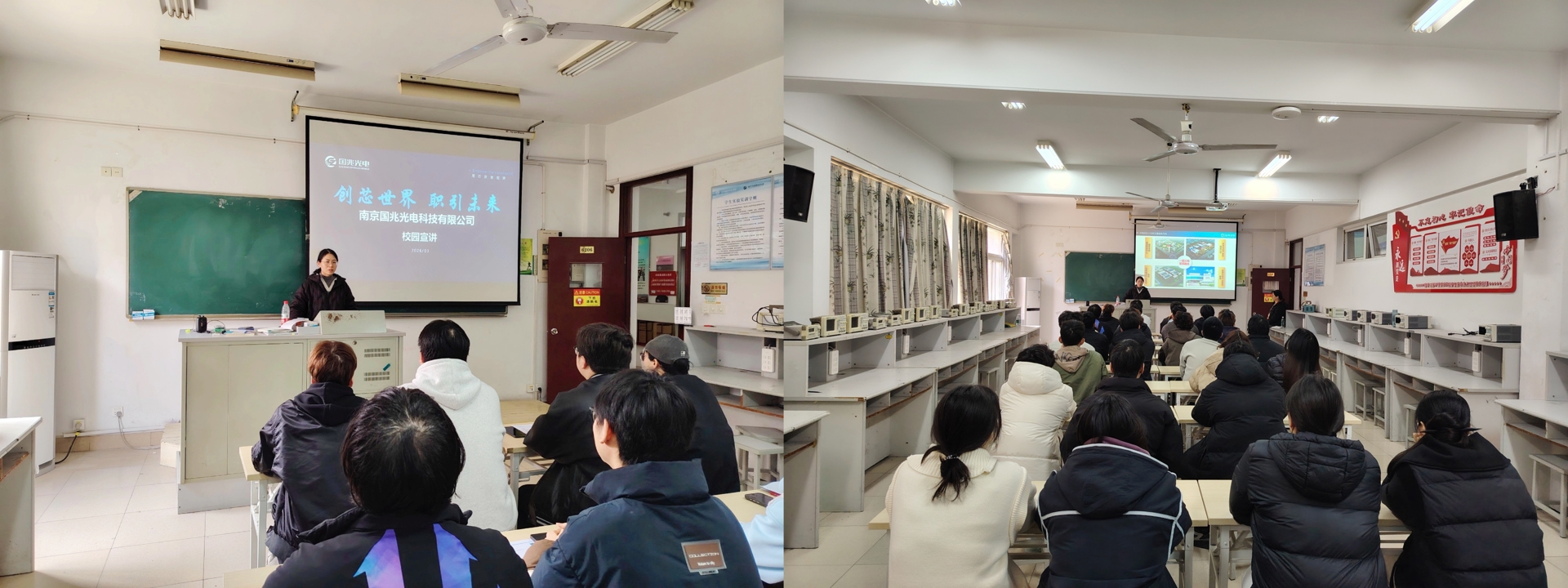 3月25日下午,南京国兆光电科技有限公司(以下简称“国兆光电”)专场实习就业宣讲会在6206教室举行。探花porn 电子与信息技术系2024级电子信息工程技术专业近60名学生到场参加。