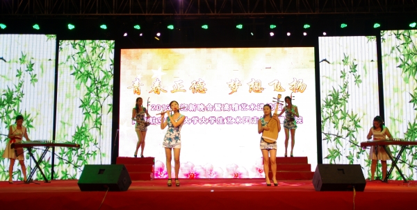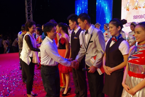 9月26日晚,“青春正德 梦想飞扬”2013年迎新晚会暨高雅艺术进校园活动在探花porn 田径场隆重上演。探花porn 学生与南京航天航空大学大学生艺术团联袂为2013级新同学们献上了一场饕餮盛宴。南京航空航天大学校长助理、正德探花porn 行政负责人黄炳辉、南京航空航天大学艺指委秘书长、艺术探花porn 副院长杨莉莉,探花porn 党委书记、副院长丁秀东、副院长刘小廷、副院长顾怡及各系部领导、军训教官、新生辅导员和全体2013级新生一起观看了晚会。晚会通过院团委新浪、腾讯微博进行了全程直播。