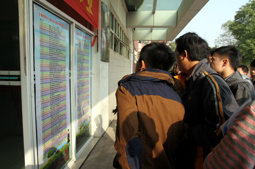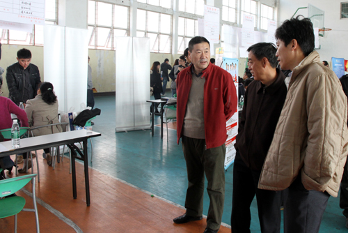 11月15日一大早,校园双选会还没有正式开始,就有许多毕业班学生手拿个人简历,等候在会场门口。有的学生认真查看贴在会场外面的参与企业名录,看看有无自己心仪的企业。有的学生认真翻看自己的个人简历材料,看看有无疏漏。也有部分毕业班辅导员教师和学生交流面试注意要点。