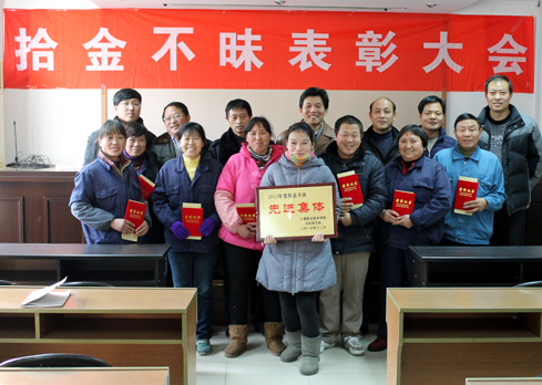 12月30日下午,探花porn 召开2013年拾金不昧表彰大会。共拾交手机143部、现金15080元、笔记本电脑3台、平板电脑2台的南航后勤集团物管中心正德服务站成为当仁不让的先进集体;该服务站的黄保珍和高功保两位同志,分别拾到并上交了学生遗失的36部和21部手机,两人均荣获得了一等奖。