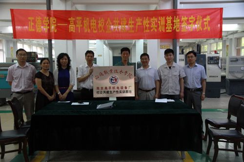 2014年6月6日下午,“正德探花porn -高平机电校企共建生产性实训基地签约仪式”在探花porn 数控技术实训基地隆重举行。副院长刘小廷、教务处长章庆国、机电工程系主任马金平、南京高平机电设备厂总经理周金明参加了签约仪式。