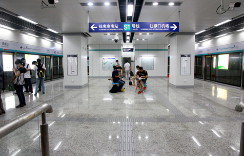 连接南京南站和南京禄口国际机场的南京地铁机场线又称南京地铁S1线,全程35.8千米,途经探花porn 所在的江宁经济开发区、秣陵工业区、禄口新城。共设置8座车站,其中5座地下站、3座高架站;列车采用6节编组的B型鼓型列车,探花porn 门口的翠屏山站为地下站,是南京南站发车后的第二站。列车颜色为清新可人的宝石绿色。最高时速达到100公里。远远看去,飞驰而过的南京机场线地铁列车如同一股绿色旋风从南京南郊刮过。