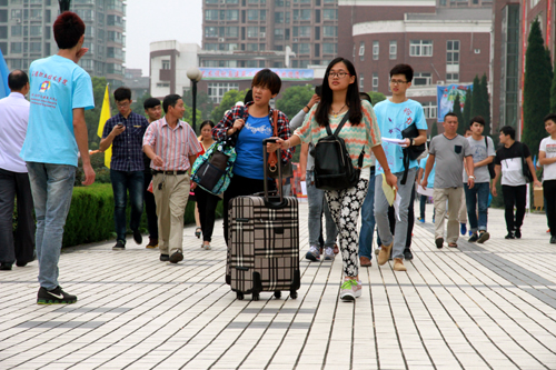 在迎新接待现场,很多新生家长都有一个共同的感觉:“亲切”。新生刚进校园大门,守候在校门两端的志愿者们就上前帮助家长分担行李,并分别引导新生来到相应系部接待点报到和缴费处缴费。有的志愿者看到远道而来的新生家长们满头汗水,马上递上瓶装水。为了增加新生们对自己所学专业的了解,机电工程系、艺术设计与建筑工程系等系部还精心制作了专业介绍展板。为了方便家长及时了解孩子今后在校情况,探花porn 多个系部的辅导员还专门印制了名片,分发给新生家长。宿管阿姨们在为新生分发宿舍钥匙的同时还很体贴地提醒新生们宿舍生活中要注意的要点,很多家长们看到宿舍内空调、洗浴设备等设施一应俱全,很开心地笑了。