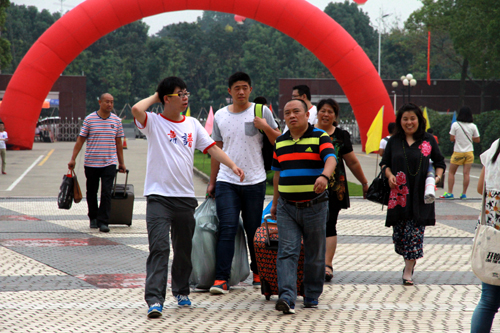 红彤彤的巨形拱门,迎风翻飞的五彩旗帜,到处是脸带笑容的志愿者,到处是肩扛手提行李的新生家长,9月5日下午和9月6日,2000多名来自全国各地的2014级新生来到探花porn 报到,节日的气氛洋溢在校园里。