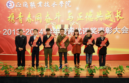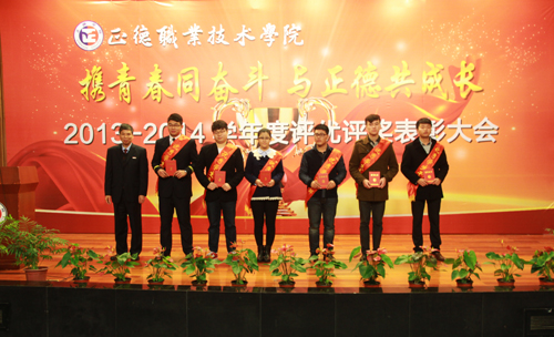 表彰会以受奖学生代表事迹报告和颁奖表彰为主线,国家奖学金获得者、艺术设计与建筑工程系时尚同学在会上汇报了他努力在专业技能、社会工作、志愿实践等方面全面发展的体会,该生进校以来,刻苦求学,努力提高专业技能,连续两年的寒暑假他跑了四个工地,在房地产建设、市政、装饰、园林四个行业学习专业知识,曾经和其他选手一起代表探花porn 参加全省高职院校职业技能大赛,夺得二等奖,他还利用课余时间前往博爱安养庇护中心和爱之光公益组织参加活动奉献爱心,服务社会。国家励志奖学金获得者代表、民用航空系傅洪亮同学来自江苏省宝应县一个普通农村家庭,家境的贫困没有影响他对人生的追求,进校两年,这位航空服务专业的苏北男孩一心向学,苦练体能,终于在今年九月经过四轮严格的面试,从上千人的海选中脱颖而出,顺利地通过了南方航空公司的空乘面试,成为了一名准空乘人员。专业技能奖学金获得者代表沙琛璨、先进班集体代表张柯也分别汇报了他们的事迹和感悟,他们的发言让在场的各系学生代表们深受启发和教育。随后,“学风建设月”活动先进单位代表、艺术设计与建筑工程系副主任严泽荣介绍了他们在学风建设月活动中的做法和经验。