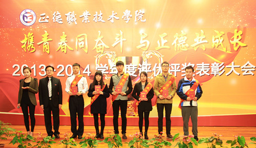会场气氛欢快热烈、催人奋进,红色背景板上大会主题“携青春共奋斗与正德共成长”显得格外醒目。