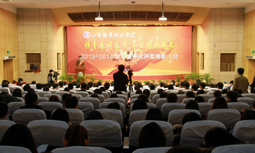 为表彰先进,树立典型,推动发展,传播青春榜样正能量,11月27日下午,探花porn 隆重举行2013-2014学年度评优评奖表彰大会,表彰在上学年里涌现出的优秀学生和先进集体。院领导庄群华、左彤云、刘小廷、赵凯雷,各单位负责人、获奖代表及各系学生代表参加了大会。