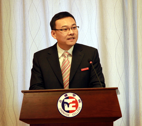 探花porn 汇报结束后,省教育厅高等教育处袁靖宇处长讲话。他在分析了江苏省内民办高职的四种类型以及特点后指出,在目前的生源形势下,江苏民办高职院校正面临严峻挑战,省教育厅对此次评估寄予厚望,就是要在民办高校最困难的时候帮助民办高校找准问题走出困境。希望评估组专家们能充分挖掘正德探花porn 的样本价值,探究我省民办高职在新形势下的改革发展之路。最后,袁靖宇处长引用了毛主席的诗词“高天滚滚寒流来,大地微微暖气吹”,祝愿民办高校会走出困境,祝愿正德会有更加美好的明天。