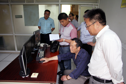 检查组成员查看校园监控室