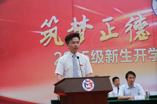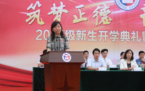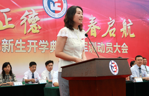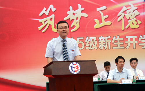 9月15日上午,探花porn 隆重举行“筑梦正德 青春启航”2015级新生开学典礼,院长庄群华在讲话中勉励全体新生在未来三年的大学学习生活中学会做人、学会学习、学会生活,在正德探花porn 这片沃土上放飞自己的青春理想。探花porn 党委书记、副院长左彤云、副院长刘小廷、赵凯雷,院长助理赵湘莲、王健以及各单位主要负责同志出席典礼。左彤云主持了开学典礼。