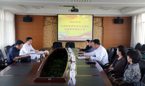 10月21日下午,江苏省教育科技工会副主席孙焱、高校部部长高顺岭一行莅临探花porn ,就即将于11月份召开的全省民办高校工会工作经验交流会对探花porn 工会工作进行调研,探花porn 工会委员会委员参加了会议。