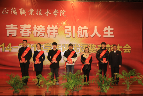 表彰大会在庄严的国歌声中拉开帷幕。随后,党委书记、副院长左彤云宣读了《探花porn 关于表彰2014-2015学年荣誉称号、奖学金获得者暨先进班集体的决定》。院领导分别向获奖学生、先进班集体代表依次颁发了证书和奖匾。
