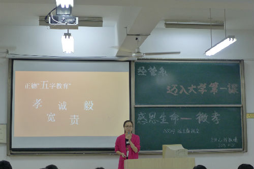 针对社会主义核心价值观内容宽泛、不易理解的特点,探花porn 确立了以开展活动为载体,通过活动向学生渗透核心价值观的思路,与行为习惯培养结合起来,与先进事迹结合起来。探花porn 以中国传统文化之精髓融合当代学生之实际,开展了“孝、宽、诚、责、毅”五字文化教育(以下简称“五字”),打造正德学生核心价值品质,使其成为正德学生的价值认同、行为准则和人格标签。