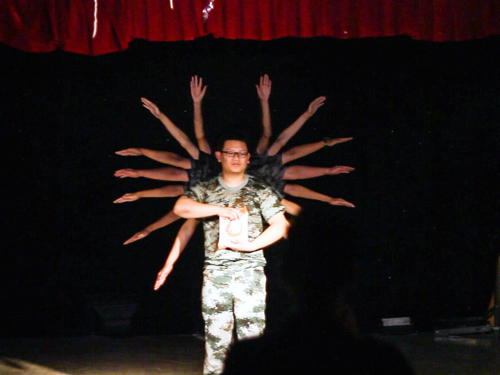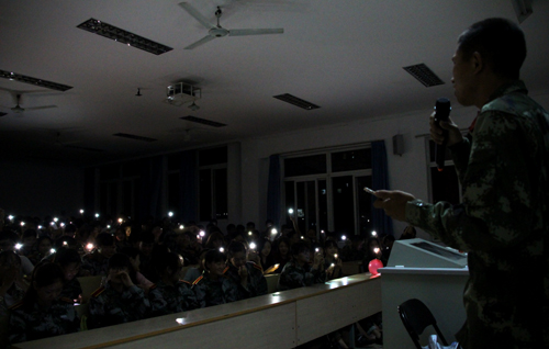 今年的中秋,适逢新生军训,数十位军训教官为了探花porn 新生军训工作放弃了和家人团聚。他们热情参与到探花porn 各系的新生中秋联欢晚会,军训场上严肃的他们在中秋夜和大家一起唱一起笑一起鼓掌,打成一片。负责汽车工程系军训的教官的生日正好在中秋当天,当他来到该系中秋活动现场时,同学们拿出早已准备好的蛋糕,为他齐声演唱《祝你生日快乐》,这位军训教官非常感动,连声向同学们道谢。