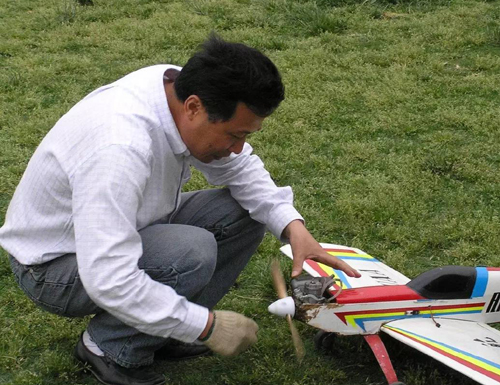 朱国鸣老师正在调试航模(资料图片)