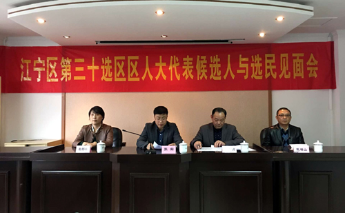 见面会上,2名正式代表候选人衡艾明(拟任江宁区人大常委会开发区人大工委主任)、戴增山(中电电气南京光伏公司EHS经理)首先向选民代表介绍了本人基本情况,并对履职设想进行了汇报和说明,表达了为选民服务的愿望。在问答环节,选民代表就如何为本选区的选民办实事等问题与正式代表候选人进行了交流,加深了对代表候选人各方面情况的了解。两位正式代表候选人表示,如果当选为区人大代表,将立足本职岗位,履行好代表职责,反映好选民关心的热点难点问题,不辜负广大选民的厚望。